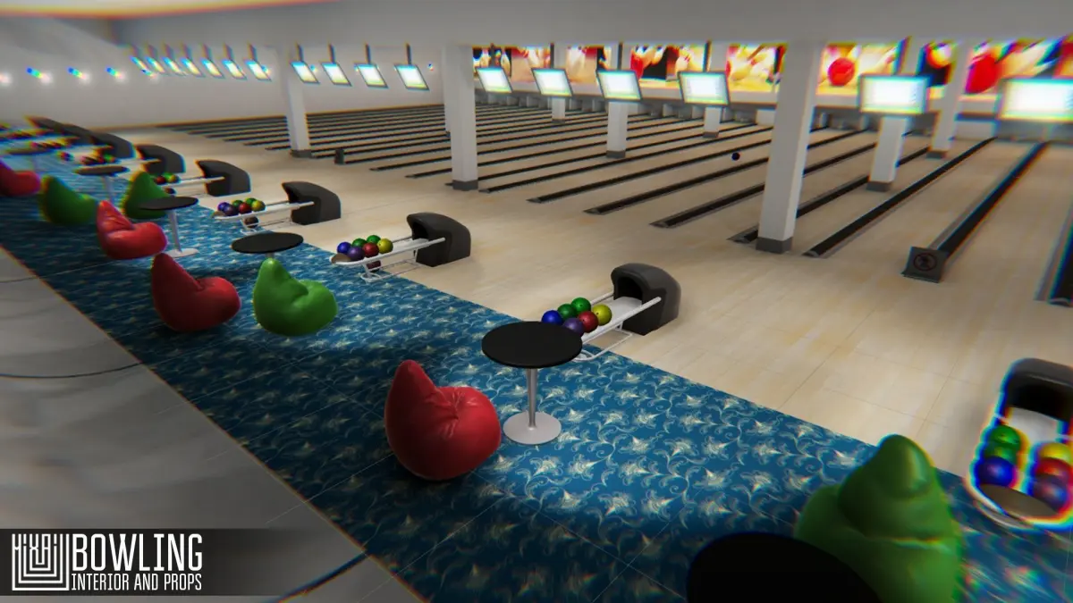Mixaill studio presents a good solution for your games, VR projects and simulators.Bowling - interior and propsis a hall for bowling, which has all the necessary equipment and interior items that will help you save time on implementing your ideas.Pack includes a large set of necessary models:roomwindowdoorskittlesbowling ballball return systembowling lanescoreboardbar tablepoufAll textures PBR.
