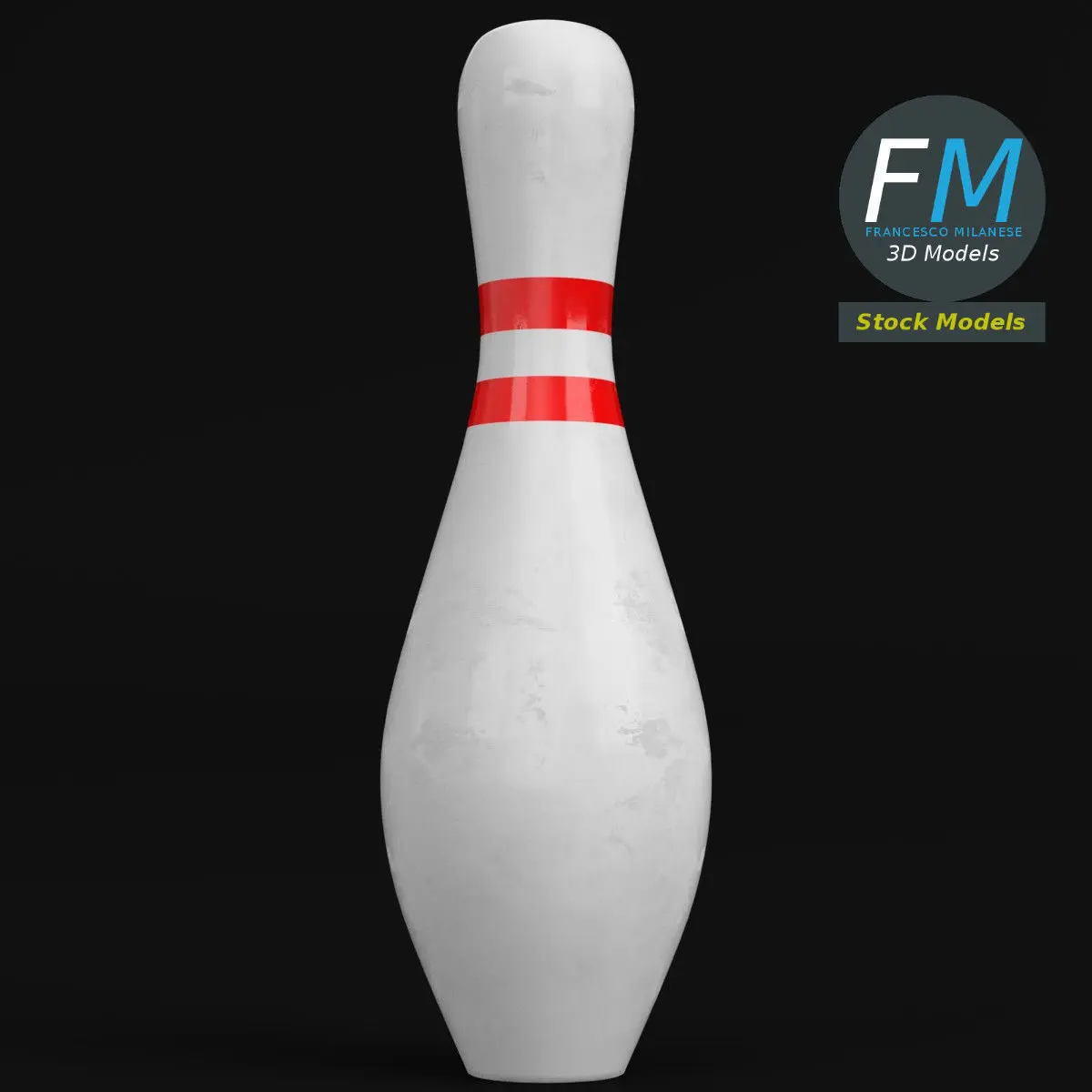 Bowling pin 3D Model. Production-ready 3D Model, with PBR materials, textures, non overlapping UV Layout map provided in the package.