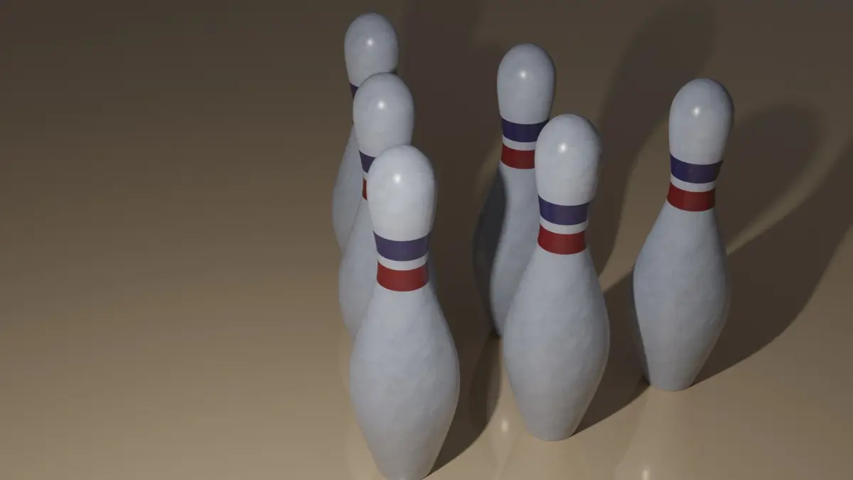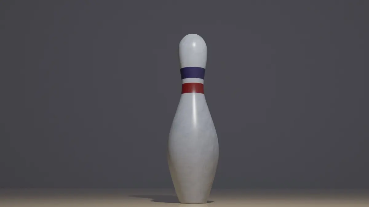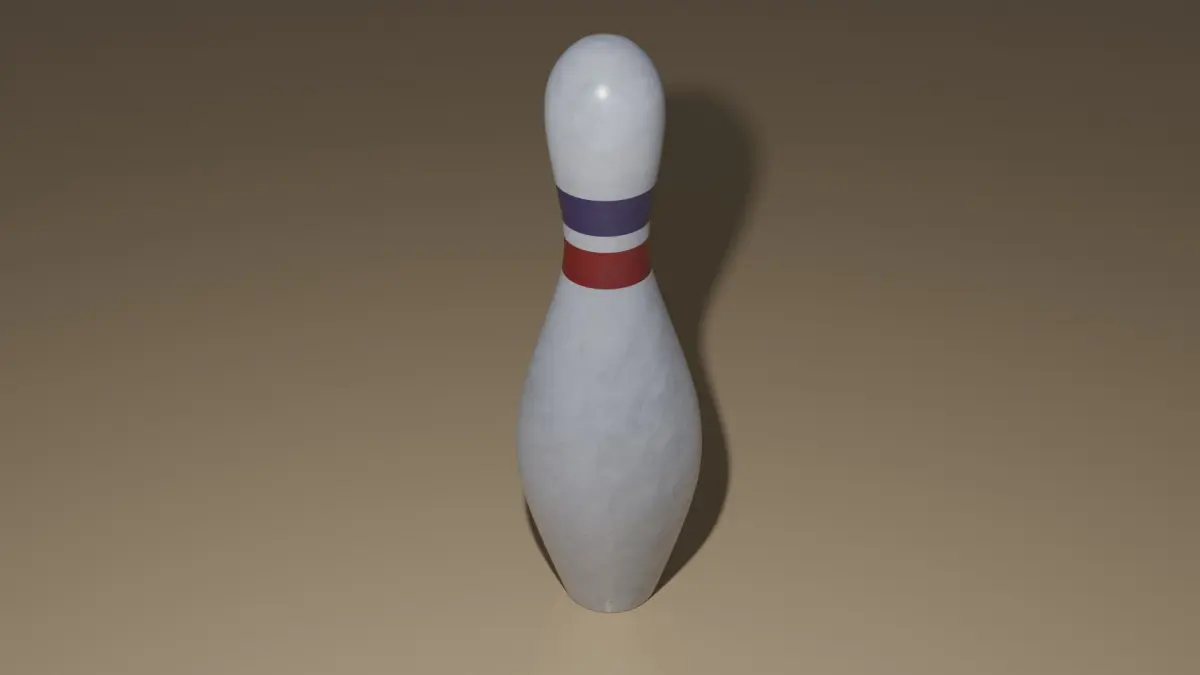 Bowling pin with red and blue lanes.