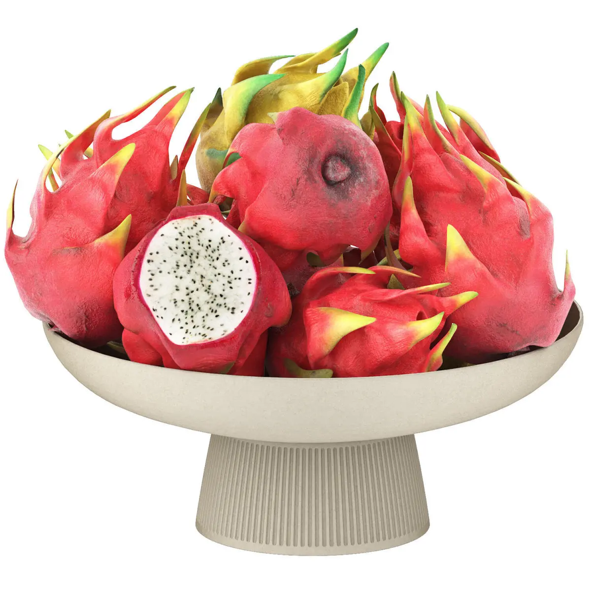 bowl of dragon fruitsdescription FORMATPlatform: 3dsMax 2015 + obj,Render: Vray + coronasize: 18 MBtextures:2048x2048polys : 269820verts : 134932units: millimetersDimensionsx : 364,127 mmy : 343,666 mmz : 319,744 mmdragon, pitaya, pitahaya, fruits, food, bowl, tropical, fruit, kitchen, decor, with, dish, plate,