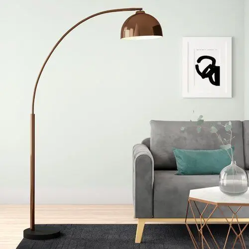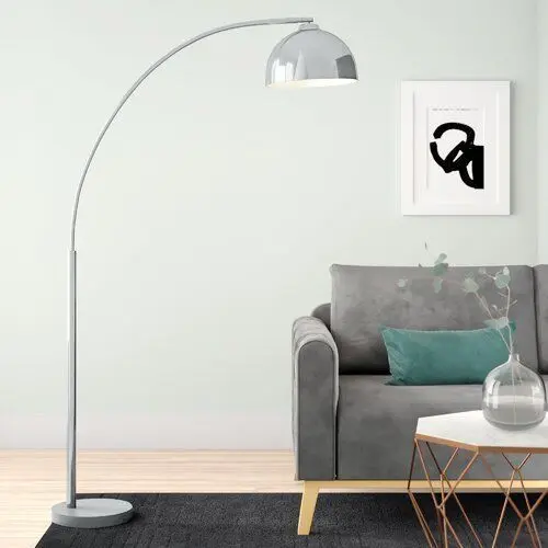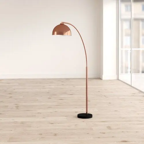 CordCord Length (cm)250cmOther DimensionsOverall Dimensions180cm H x 32cm W x 110cm DShade15cm H x 30cm W x 30cm DBase5.5cm H x 32cm W x 32cm DOverall Weight11.7kgDefined by its streamlined arc silhouette, this 175cm arched floor lamp leans over your favourite armchair or side table to make your space both brighter and cosier. A sleek metallic finish outfits this piece's slender steel body and bowl shade for a modern feel. Just plug it in and pair it with a compatible 60W medium-base bulb (not included) to cast a warm and welcoming glow over your room.Not Included:Bulb(s)FeaturesLocated on wire flexClass: 2 (double insulated)Product DetailsProduct Type: Arched/ArcNumber of Lights: 1Bulb Included: NoFixture Material: MetalRange of Fixture - Maximum: A++Switch IncludedSwitch Type: In-LineShade IncludedShade Material: Metal