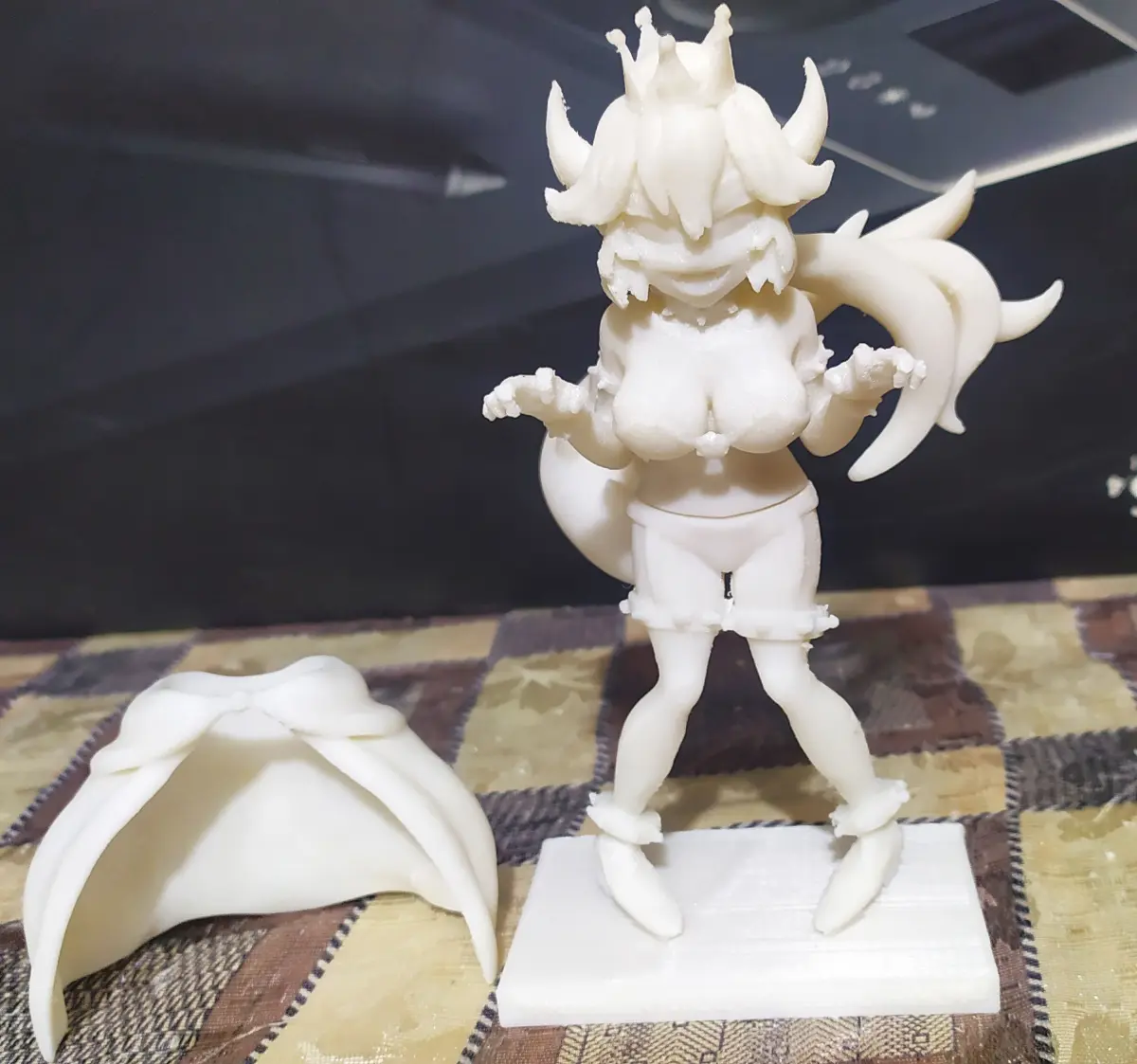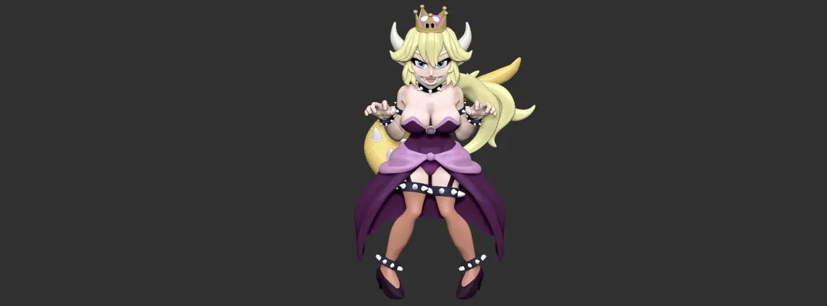 Model made in pieces of the enemy of Mario Bross (Bowser) turned into a princess, thanks to the crown of Princess Peach.The model is divided into head, tail of the hair, torso, legs, tail, the base so that it can stop and the part of the skirt that can be removed or put so that it does not cover its legs.The STL file is in a size of 15 cm high, for a good impression and to see the model well.I use the Cura program and I print on ABS material, in this case there are very small parts that you have to be careful when removing the supports.For an optimal impression of the floor print each part of the side, not lying on the front.