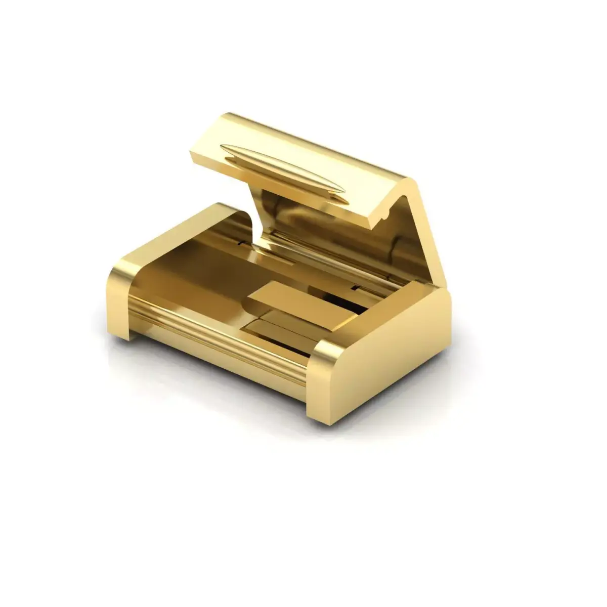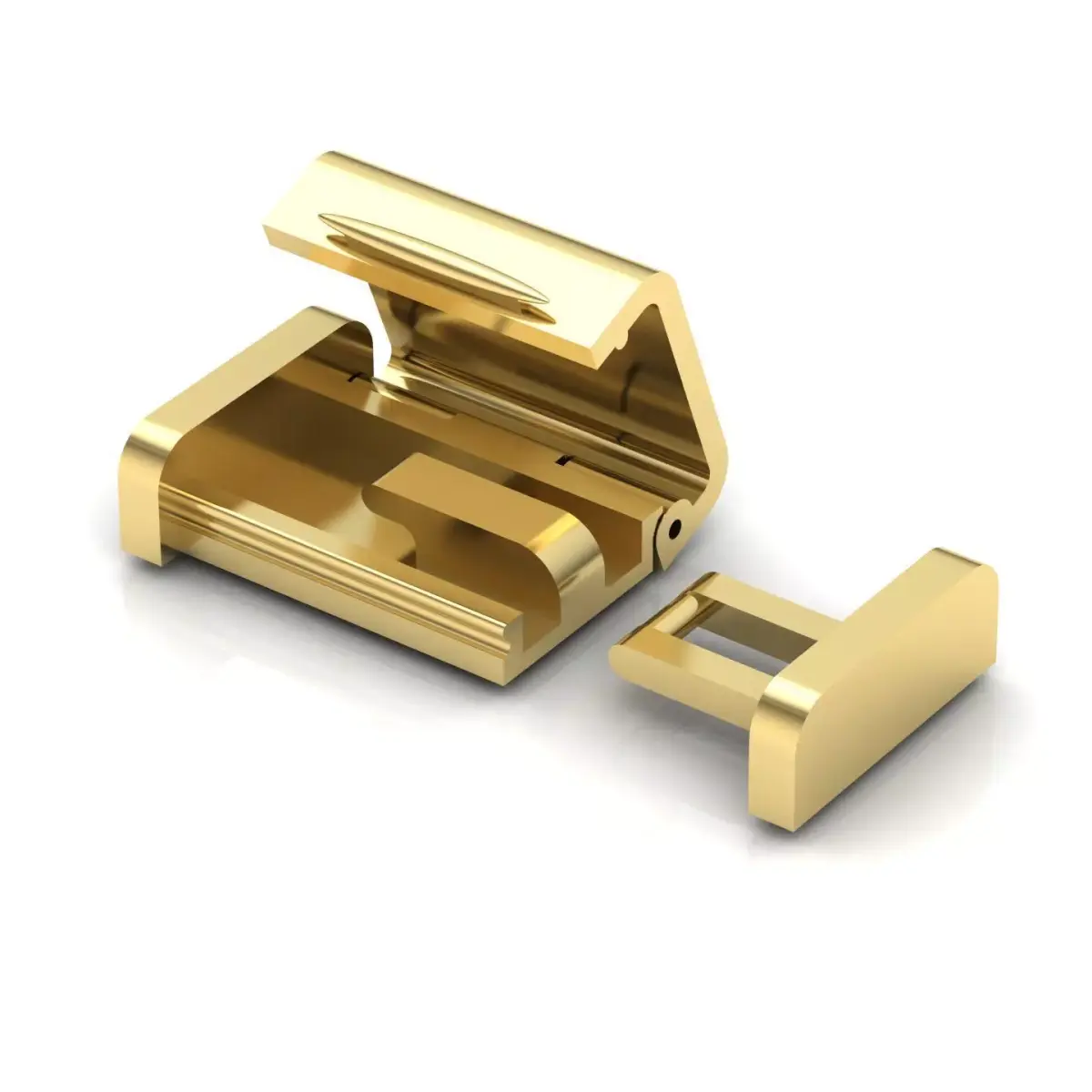 This high-precision 3D model shows a metal lock mechanism with a clean, industrial design, suitable for professional product visualization, mechanical projects, and industrial renderings. The model features a solid main body and a hinged lock element that accurately reflects real-world manufacturing details.