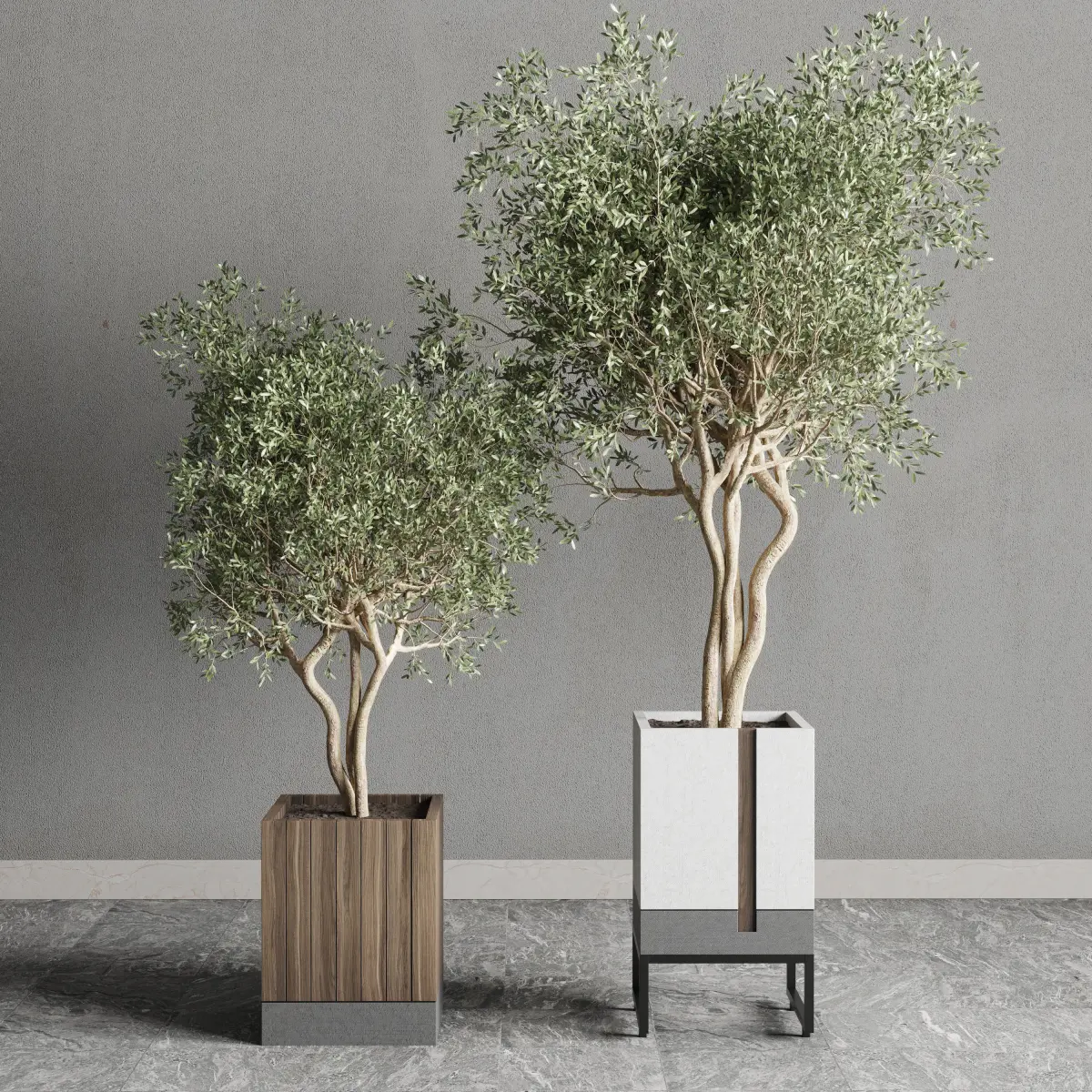 Box pot plant and tree shrub bush indoor plant set 172 wooden and concrete dirt vase