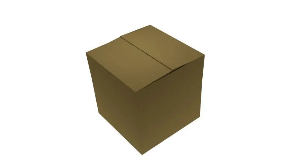 Very simple box made in blender with a material in a light brown color and rigged to have flaps move.