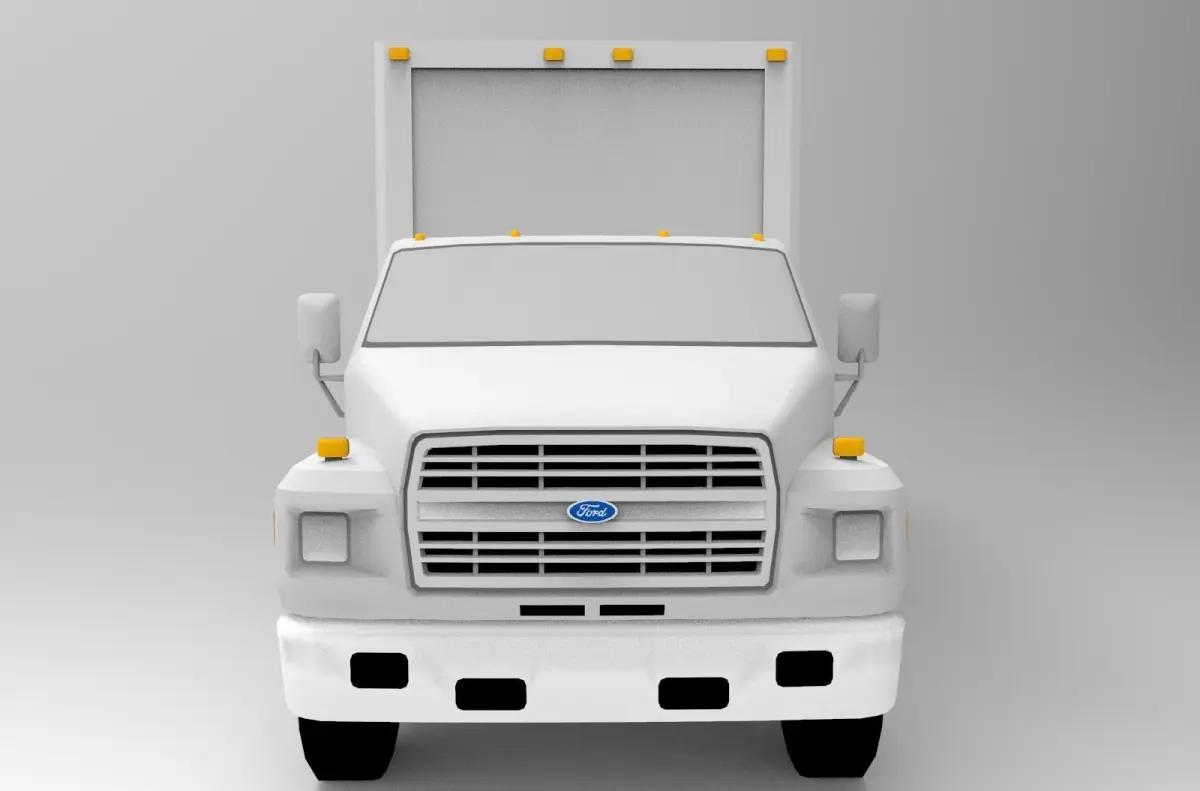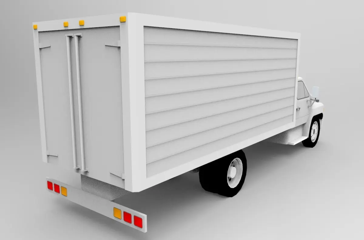 This is a 3d model truck box with a box on the back of the car to store goods and objects that will be sent between cities with a box of 5x2x2 Meters of sufficient capacity as an freight expedition, with a minimalist and simple design.