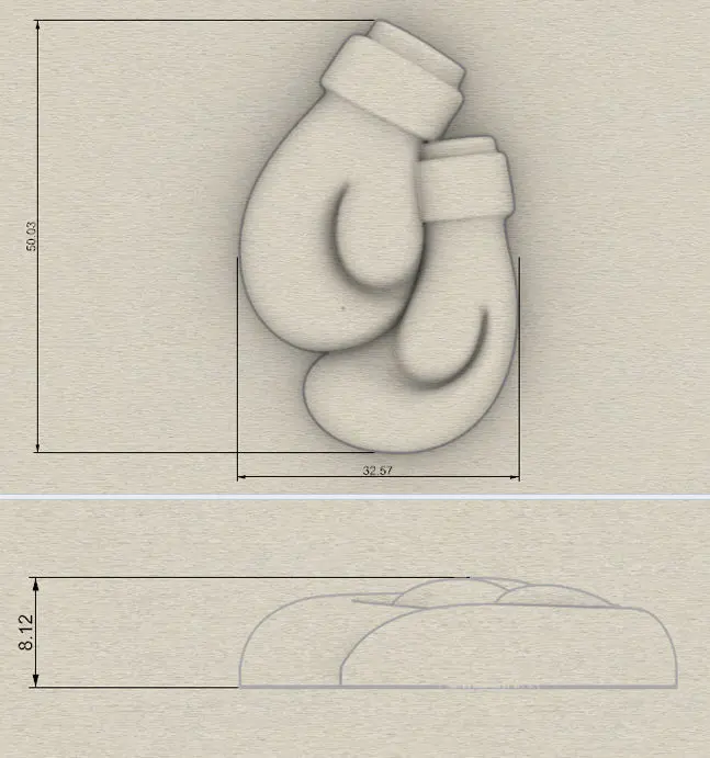 Boxing gloves for pendant , necklace , coin , charm , medallion or overlay. 3D print model. All measurements are shown in the pictures. Formats: .stl .obj This is model is already printed. .stl file is fixed in Magics. .stl file is correct, checked by Mag ics.