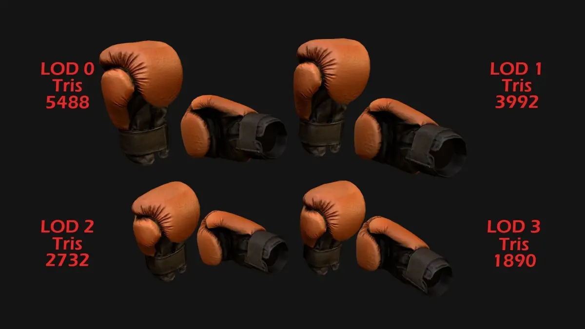 Game ready models.Stylized and detailed Boxing Gloves fully textured, sculpted and rendered with Physical based rendering (PBR) - Shown images have been rendered in Marmoset Toolbag .The models contains lods, detailed information on the images.