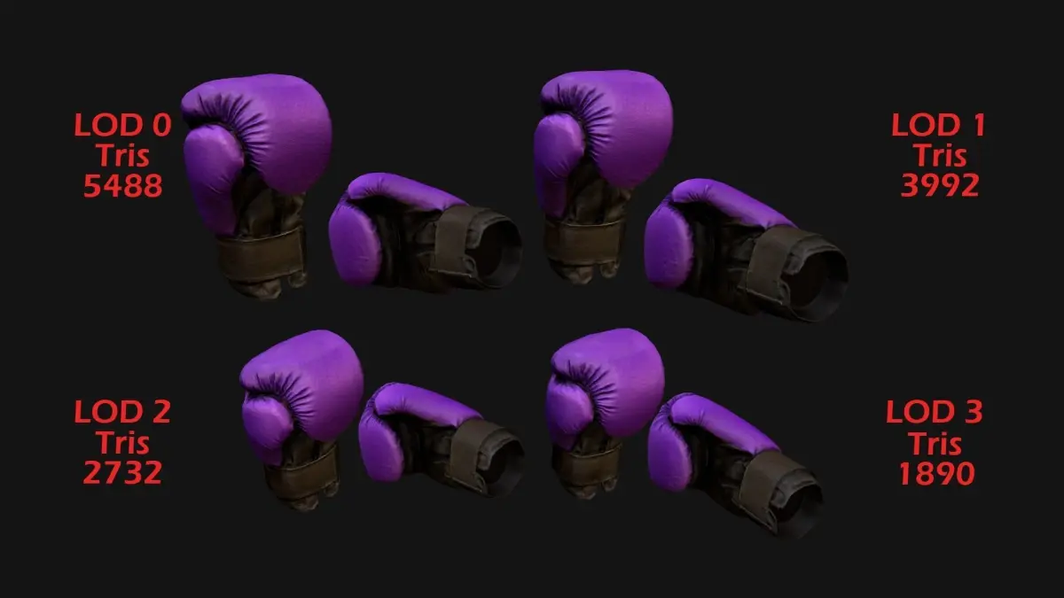 Game ready models.Stylized and detailed Boxing Gloves fully textured, sculpted and rendered with Physical based rendering (PBR) - Shown images have been rendered in Marmoset Toolbag .The models contains lods, detailed information on the images.