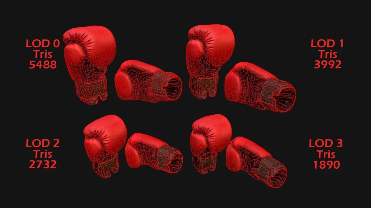 - Edges: 8232(LOD0),5988(LOD1),4098(LOD2),2835(LOD3).