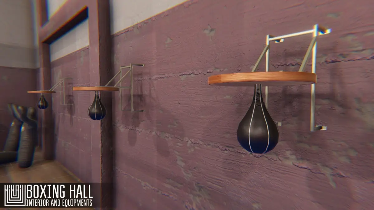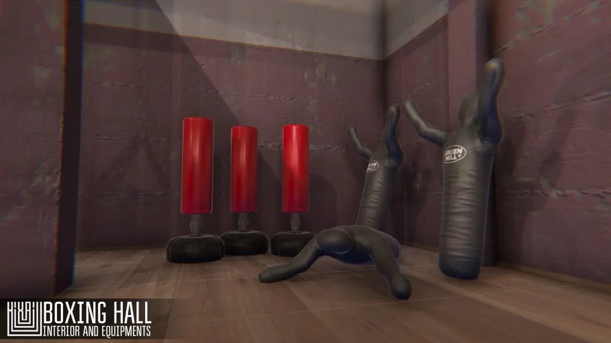 Mixaill studio presents a good solution for your games, VR projects and simulators.Boxing hall - interior and equipments is a room with equipment for boxing and sports, interior items that will help you save time on implementing your ideas.Pack includes a large set of necessary models:roomdoorboxing ringpunching bag standhelmetmakiwara wallboxing gloveswrestling punchbagpunching bagpunching bag manplatform speed ball