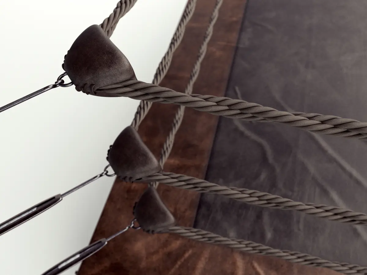 A vintage classic boxing ring with a leather surface surrounded by ropes