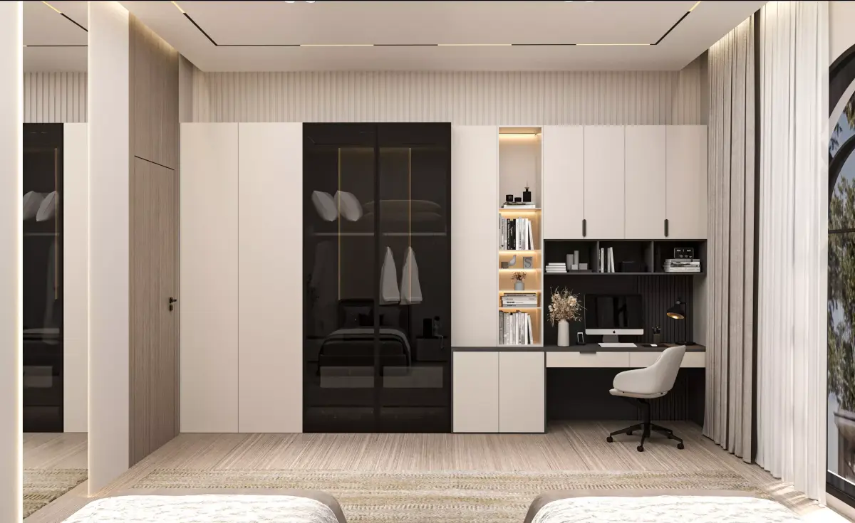 This is an bedroom design what you can ajdust and use for your required design. I created this with 3ds max 2022 and all the rendering settings are included. adjust your size and render. Branding you will have to and make it more beasutiful.