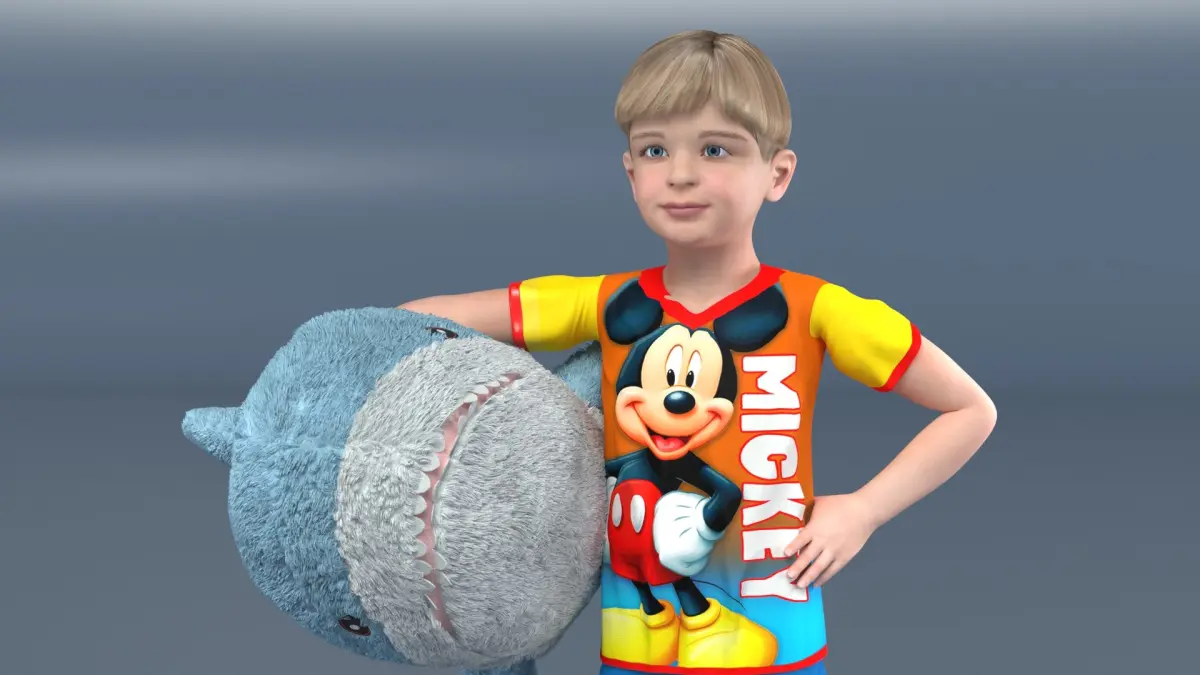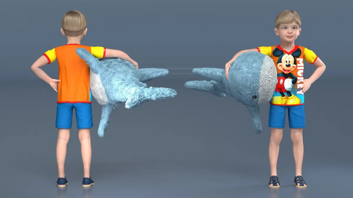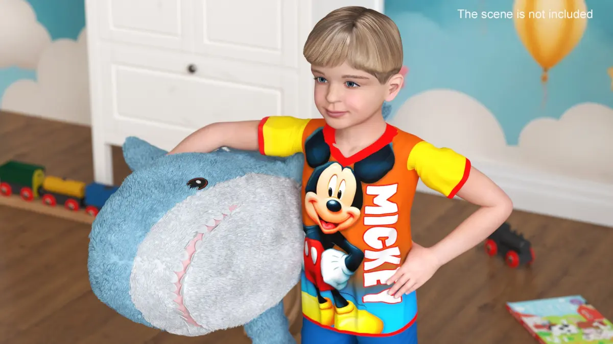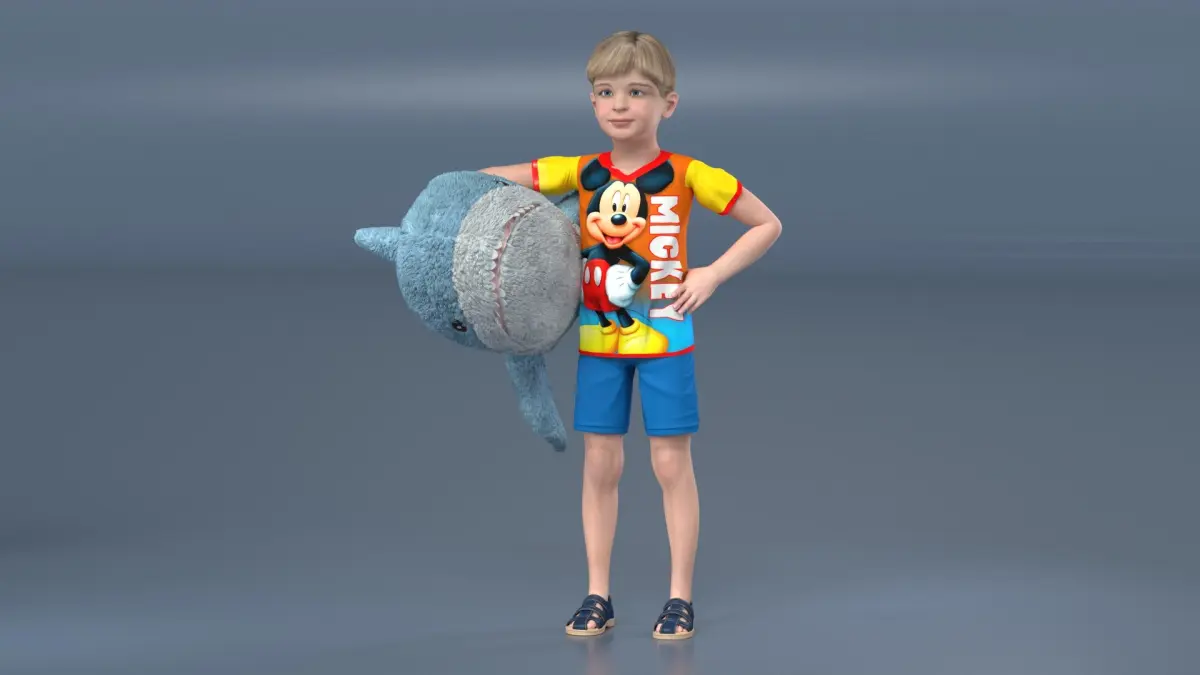 Boy with Big Soft Toy Shark from IKEA Fur is a high quality, photo real 3d model that will enhance detail and realism to any of your rendering projects. The model has a fully textured, detailed design that allows for close-up renders, and was originally modeled in 3ds Max 2020 and rendered with V-Ray. Renders have no postprocessing!