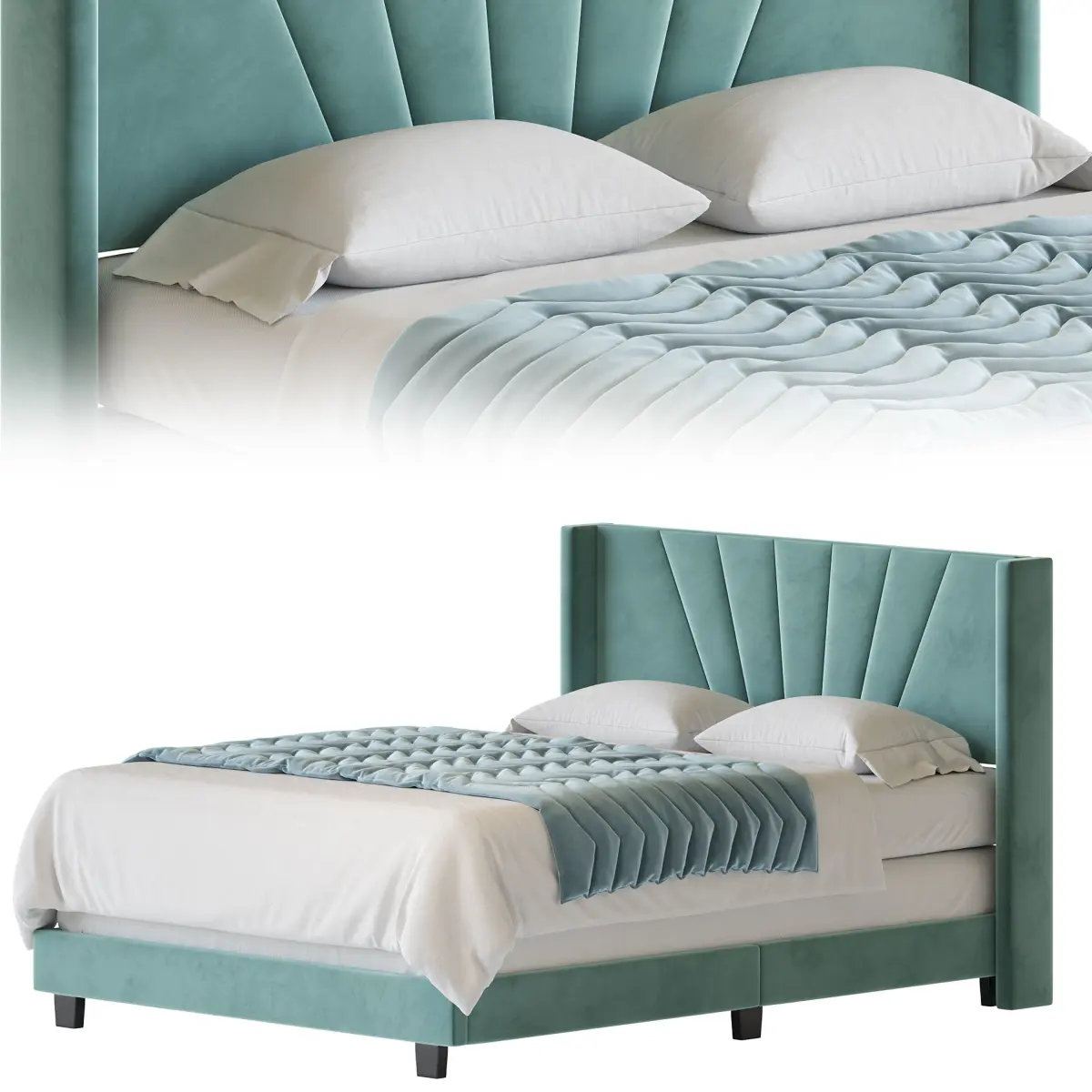Name: Boyd Sleep Valencia Velvet Upholstered Platform BedType: modelFormat: 3Ds Max 2016Export: FBX, OBJRender: Corona (7)Polys: 538969Verts: 538804Units: MillimetersDimension: 1837.04 x 2307.06 x 1198.85