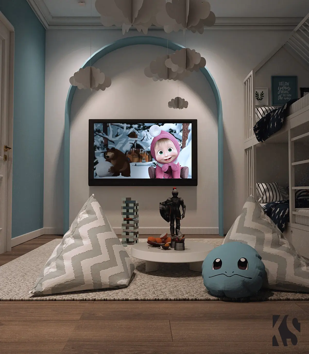 Designed a Boys Bedroom which is very practical, functional and comfortable. As always high quality V-Ray materials, textures with natural light setup. Scene is ready to render with V-Ray Render. Go ahead and download, so You can make Your own, realistic renders!