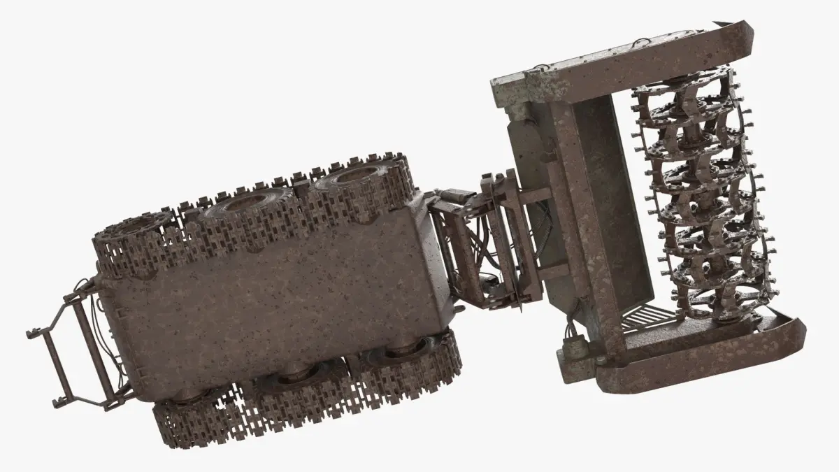 This model features authentic texturing of dirt, scratches, and operational damage, giving it a realistic worn-out appearance suitable for scenarios requiring used or aged military machinery. With its tracked chassis, protective armor, and flail system for mine clearance, the model provides a highly accurate representation of a vehicle that has been actively deployed in demining operations.
