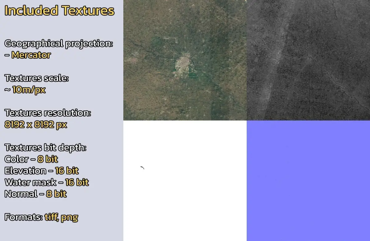 - Textures resolution: ~10m/px