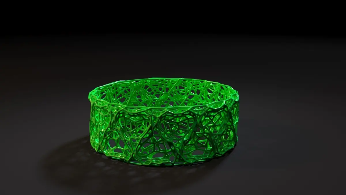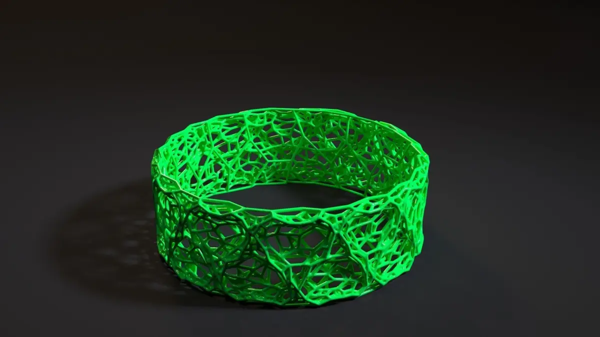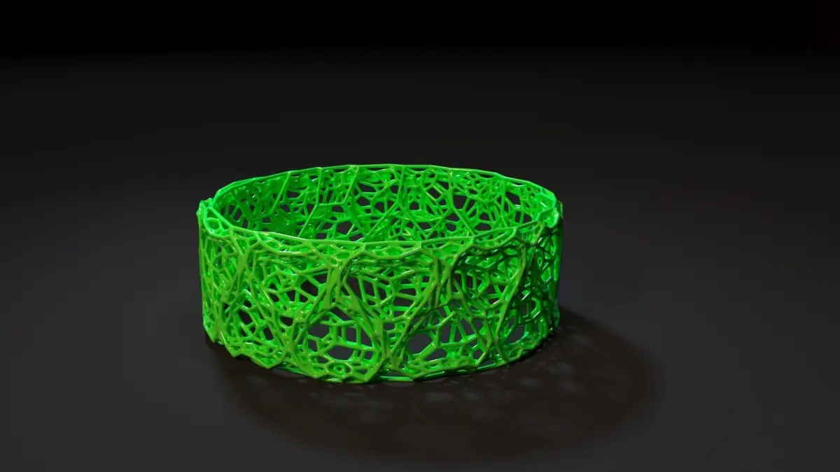 Bracelet voronoi. Decoration. Bijouterie. Unusual and stylish wardrobe item. The model is ready for 3D printing. The archive contains files: 3ds max, stl, fbx, obj. Thank you for choosing us)))
