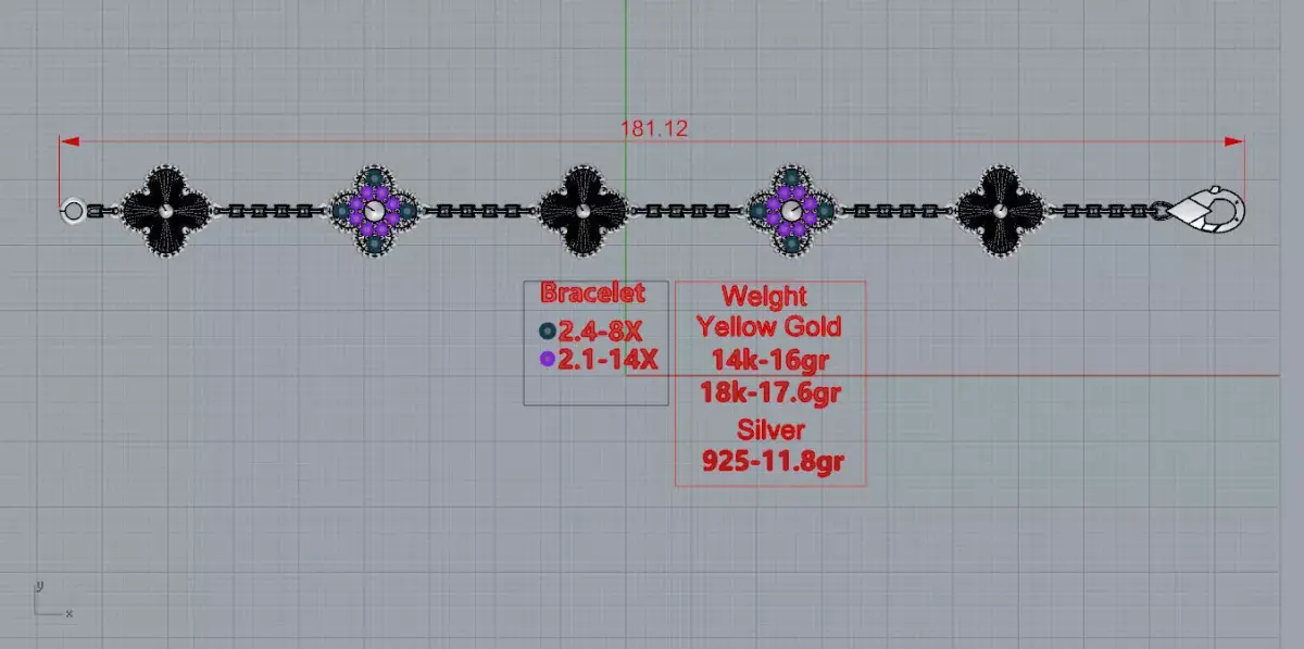 This is a 3D printed bracelet model. Stone parameters are shown in the picture. Exported file with extension (.3dm). If you have any problem, please contact me. Thanks