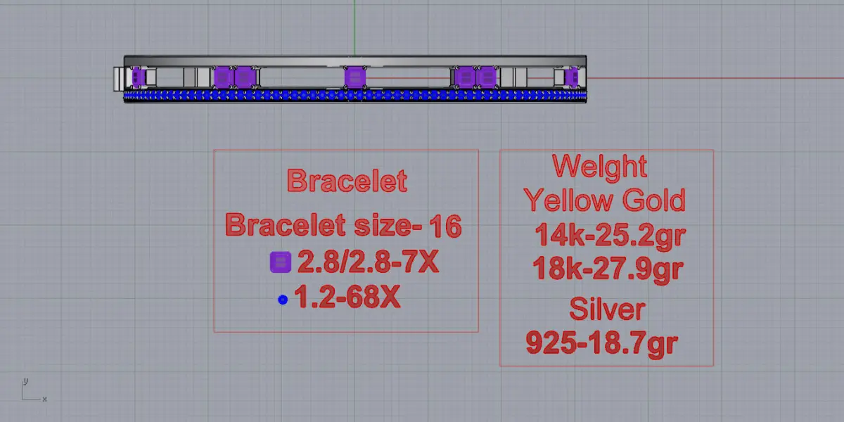 This is a 3D printed bracelet model. Stone parameters are shown in the picture. Exported file with extension (.3dm). If you have any problem, please contact me. Thanks