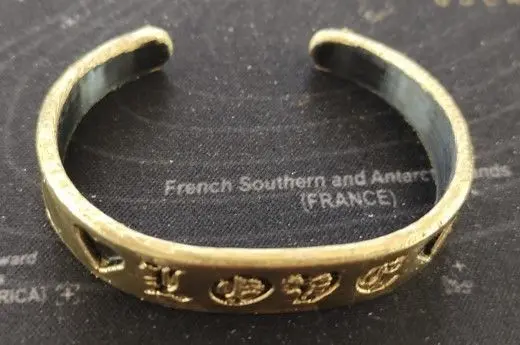 bracelet facilement imprimable en 3d sur une imprimante CREATIVE UNDER. Spécialement concue pour etre imprimable sur n'importe quelle imprimante de base sans matière support. Imprimer le modère .gcode puis détacher la matière, poncer l'excédent avec du papier de verre puis peindre avec un marqueur or pour faire le rendu.