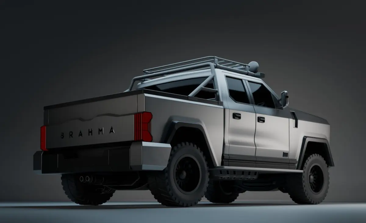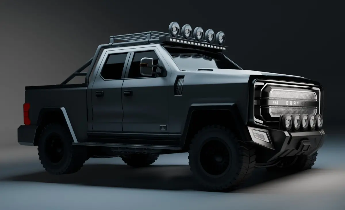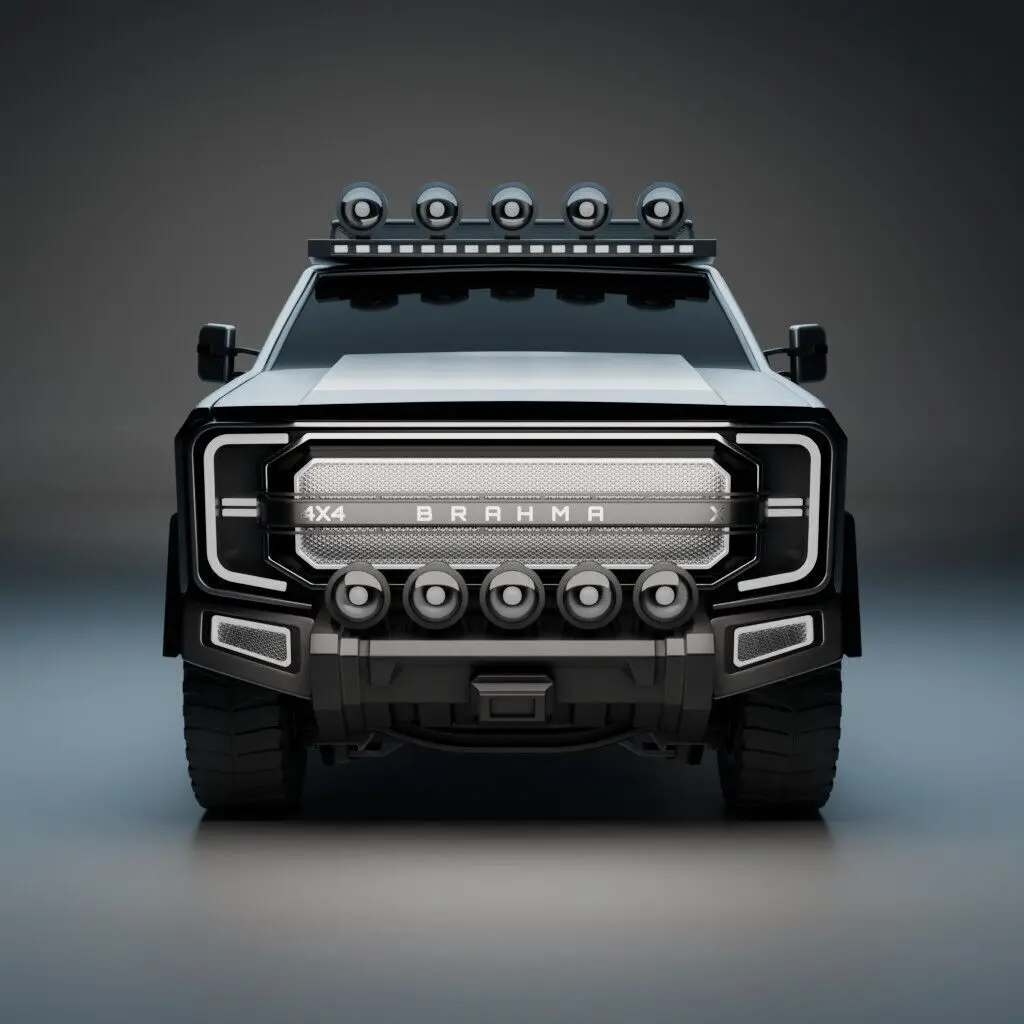 The Brahma X is a high-performance 3D model of a futuristic 4x4 offroad truck, equipped with heavy-duty bumpers, oversized terrain tires, a full roof light rack, and a striking front grille design. Perfect for desert chases, survival games, or tactical adventure scenes, this vehicle delivers both visual power and clean geometry for any pipeline.