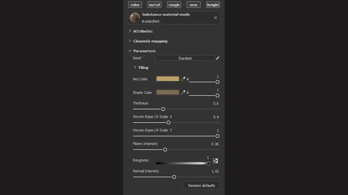 - The seamless PBR material of the braided net was created in Substance Designer 14.0.2