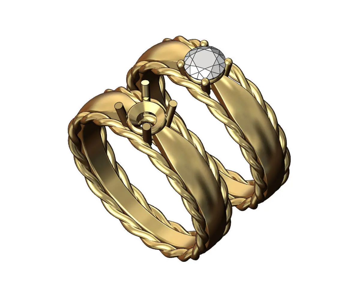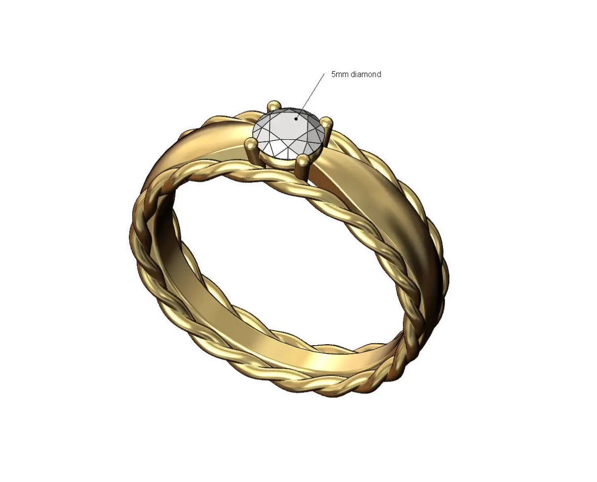 Braided rope pinched shank 5mm diamond solitaire ring