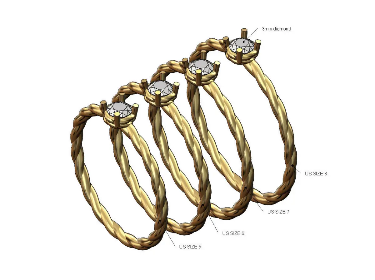 Sizes : US size 5,6,7,8 and 3mm diamonds.