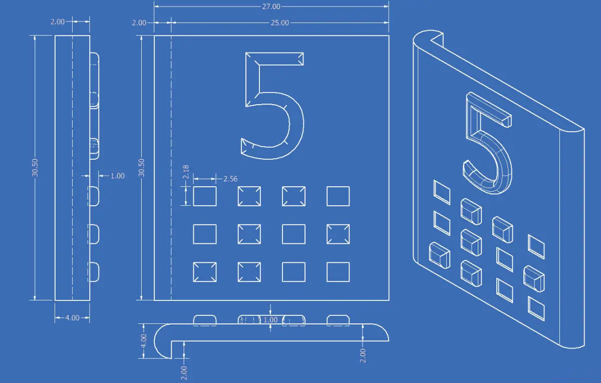 Our elevator had no Braille standard numbering for our floors so I've designed floors 0-6.all the measurements are in the blueprints preview file.I've attached also the source design if You like to add additional numbers or text.feel free to contact if additional floors are required.This is a single color design, I've added color using nail polish.