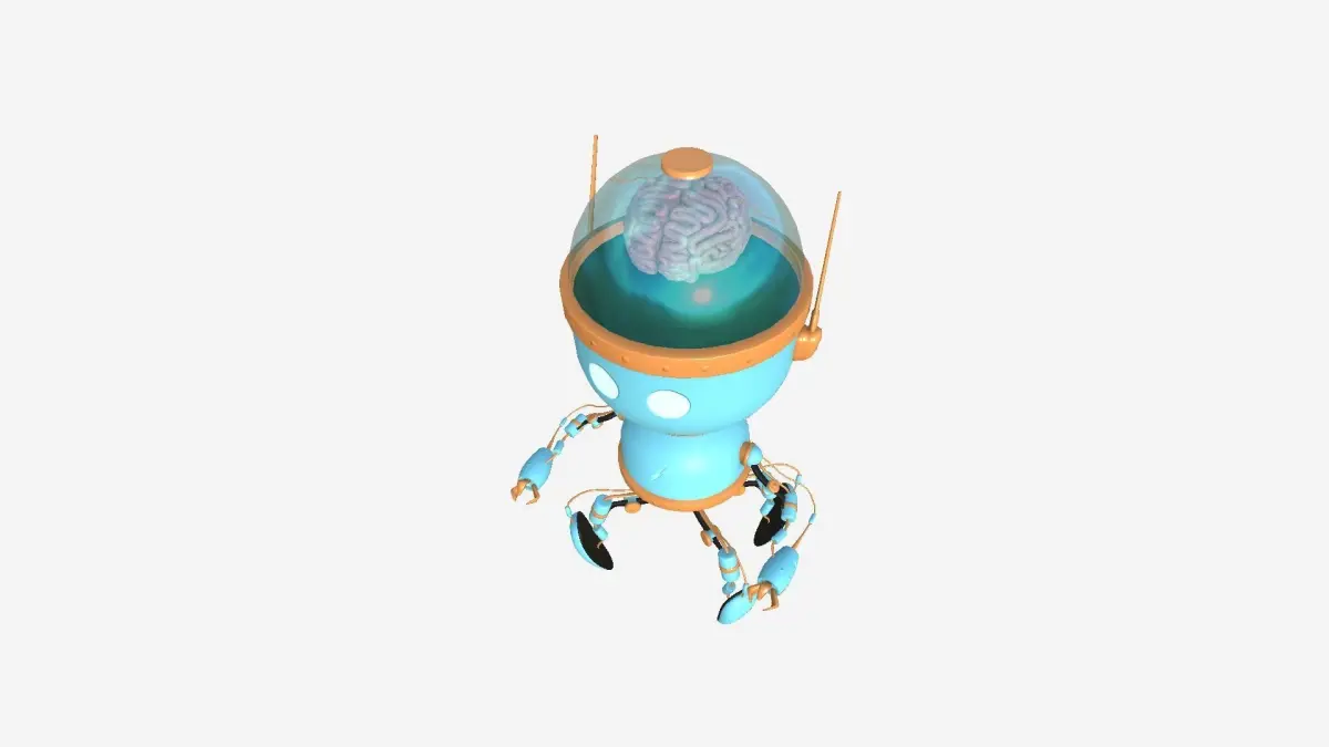 Brain Robot G09 Blue Orange - SciFi Character Design Low-poly 3D model
