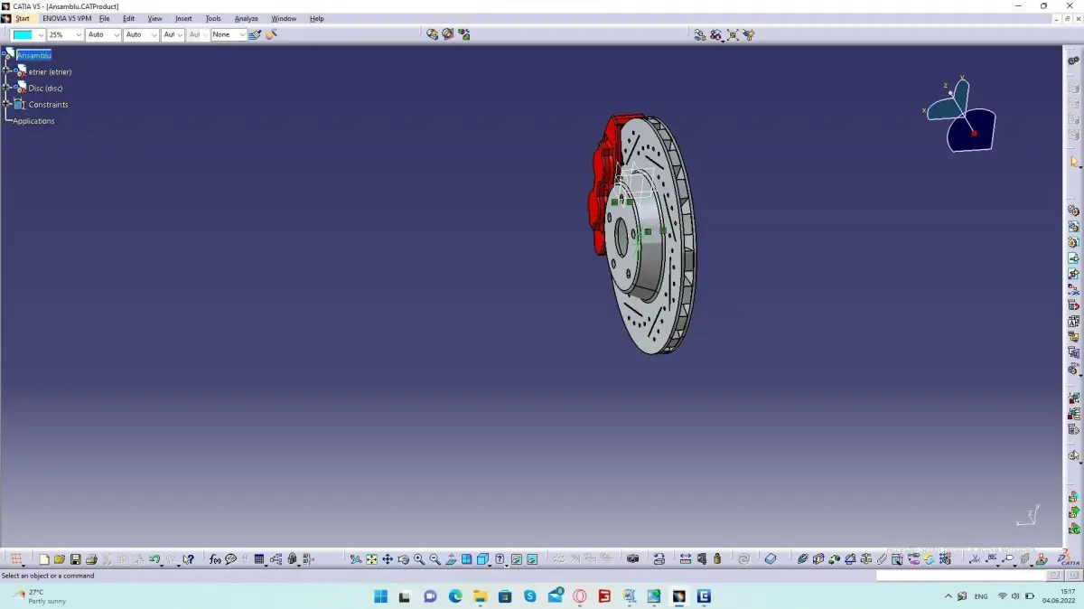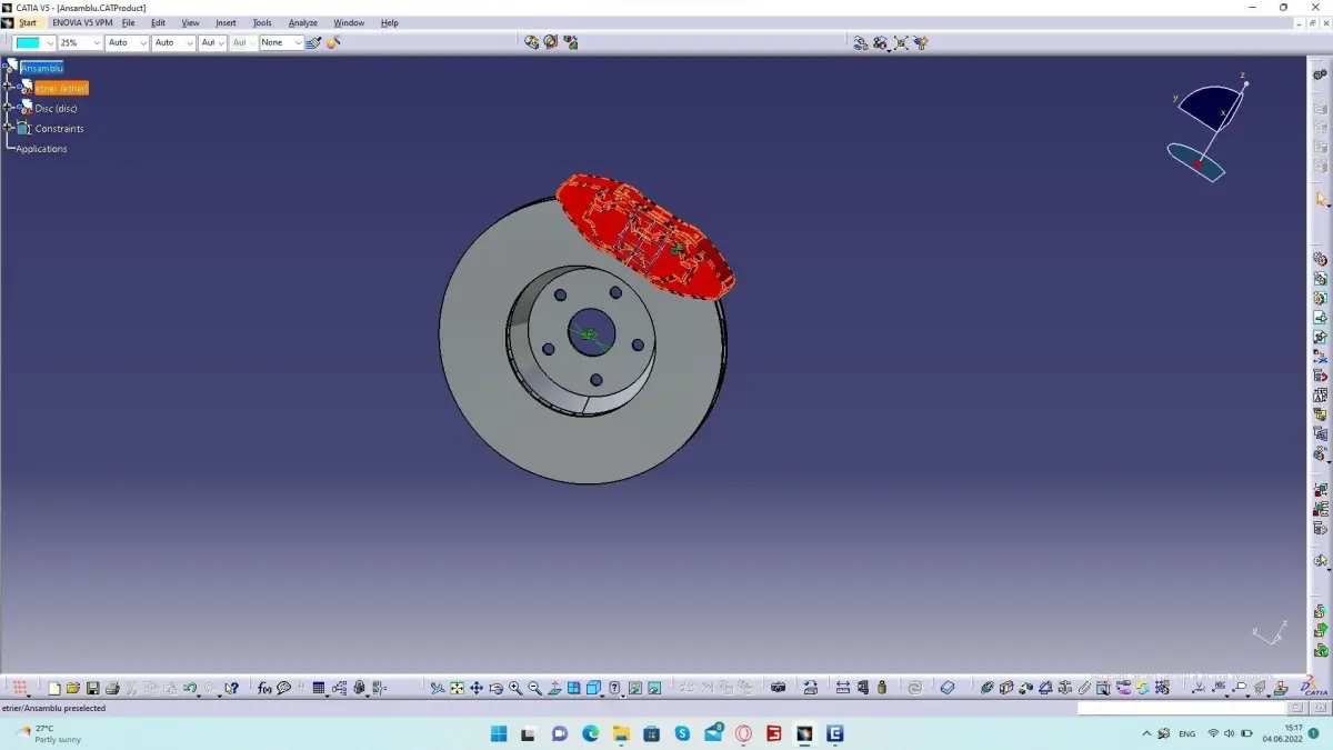 A disc brake is a type of brake that uses the calipers to squeeze pairs of pads against a disc or a rotor to create friction. This action slows the rotation of a shaft, such as a vehicle axle, either to reduce its rotational speed or to hold it stationary. The energy of motion is converted into waste heat which must be dispersed. This model are created by me.
