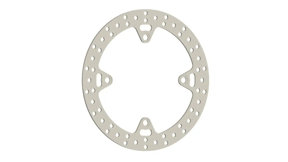 Reference: MST 204;Position: Front;Mounting: Fixed disc;Design: Round;Material: Stainless steel with high tenor in carbon;Contour: Round outer contour;Track: Perforated braking track;Quantity: 1 disc included;Disc(s) required: 2 (You will need to order 2 items to equip your motorcycle on the front);Outer diameter: 276.0 mm;Inner diameter: 144.0 mm;Thickness: 4.0 mm.
