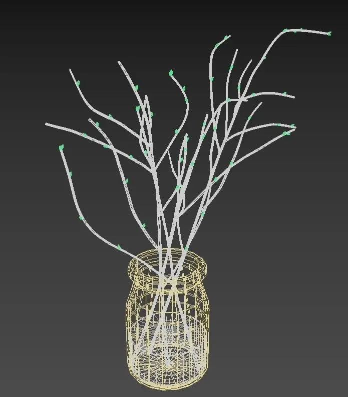 Realistic model of Branches in Glass Vase. Optimized polycount, real scale, render-ready model.