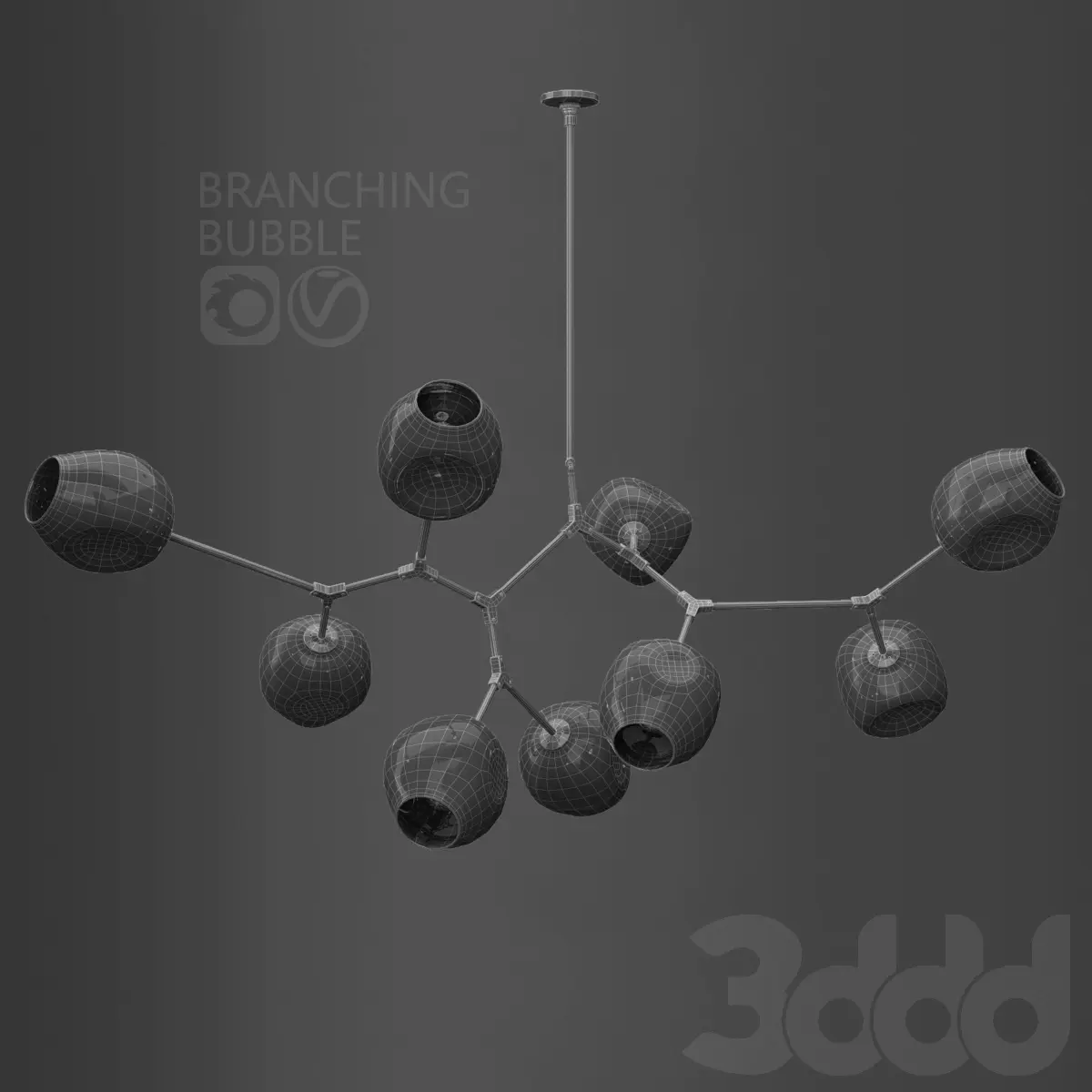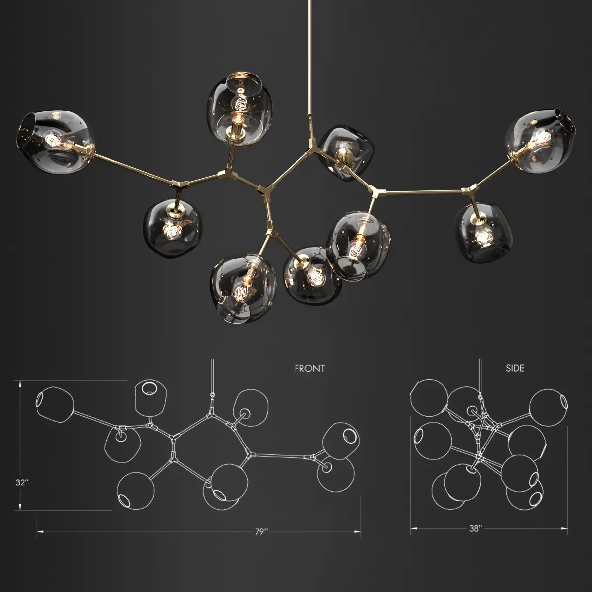 -Branching bubble 9 lamps (ceiling lamps with gradient dimming and gold frame)-Sizes:1950x850x850mm-Polys: 51720-Verts: 52479