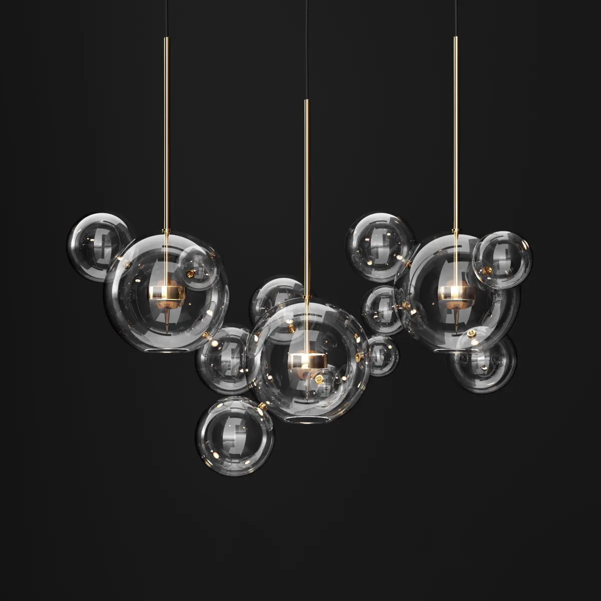 -Giopato & Coombes Bolle 14 Bulb (transparent glass bubbles with brass frame)-Sizes:1000x550x450mm-Polys: 83318-Verts: 81624