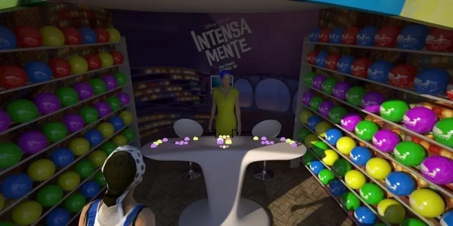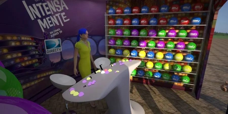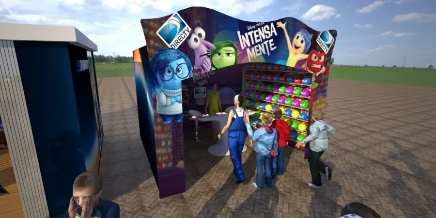 brand launch at the fair, for cable television brand, stand and attention module, with a gift of balls