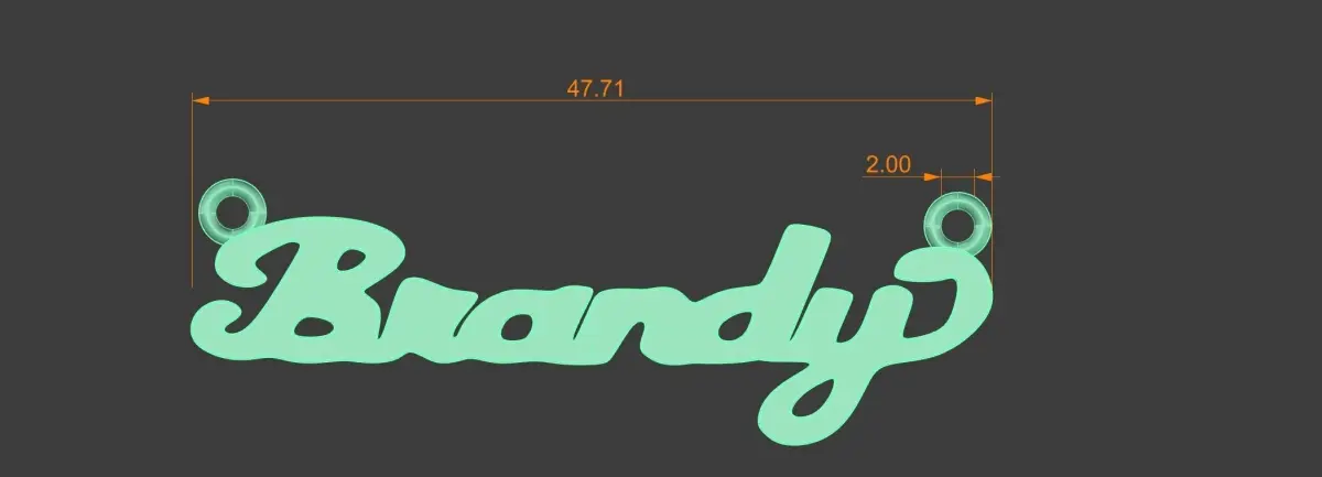 Brandy name plate pendant model up for sale. Meets all jewelry manufacturing specifications. All dimensions are in the last two pictures.