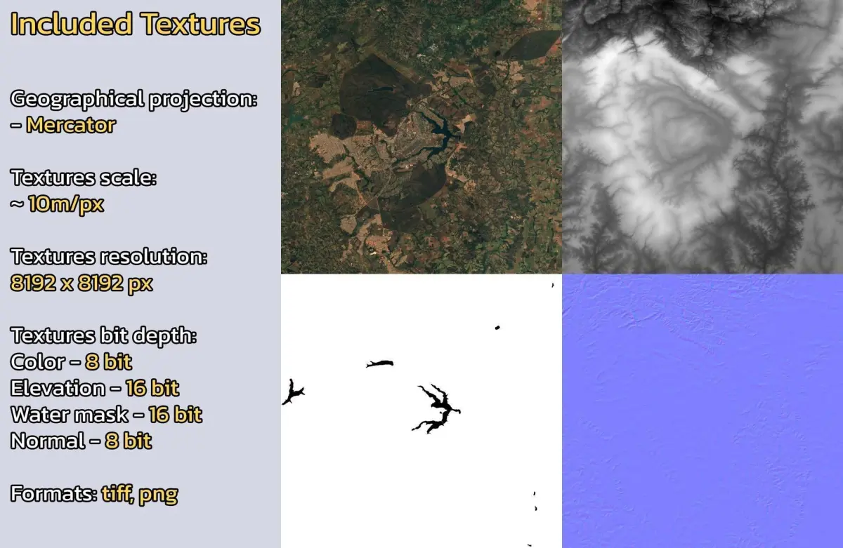 Warning: minor clouds/artifacts may be present on the diffuse color satellite texture due to the nature of the dataset. Check product images.
