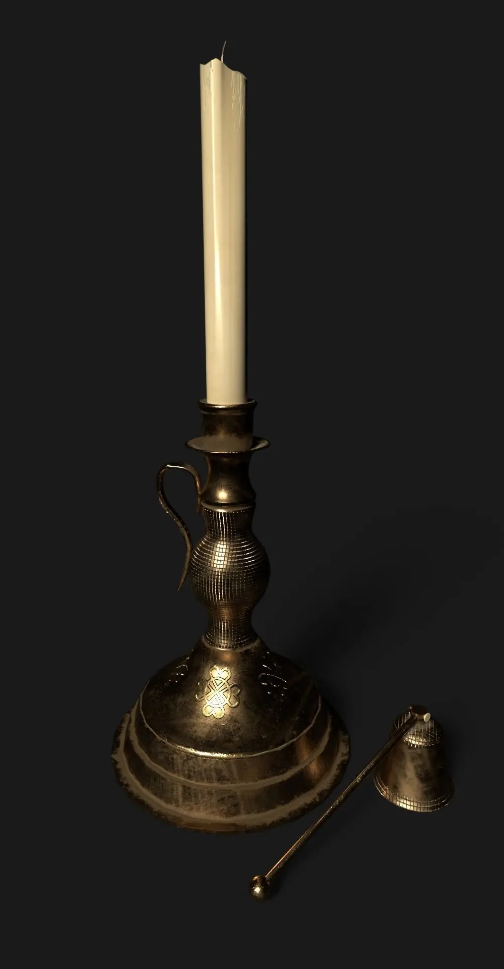 Low poly, game ready, animation ready 3D model Brass Candle Stick.