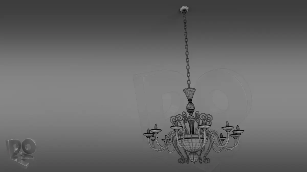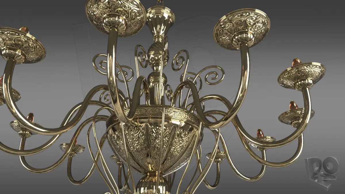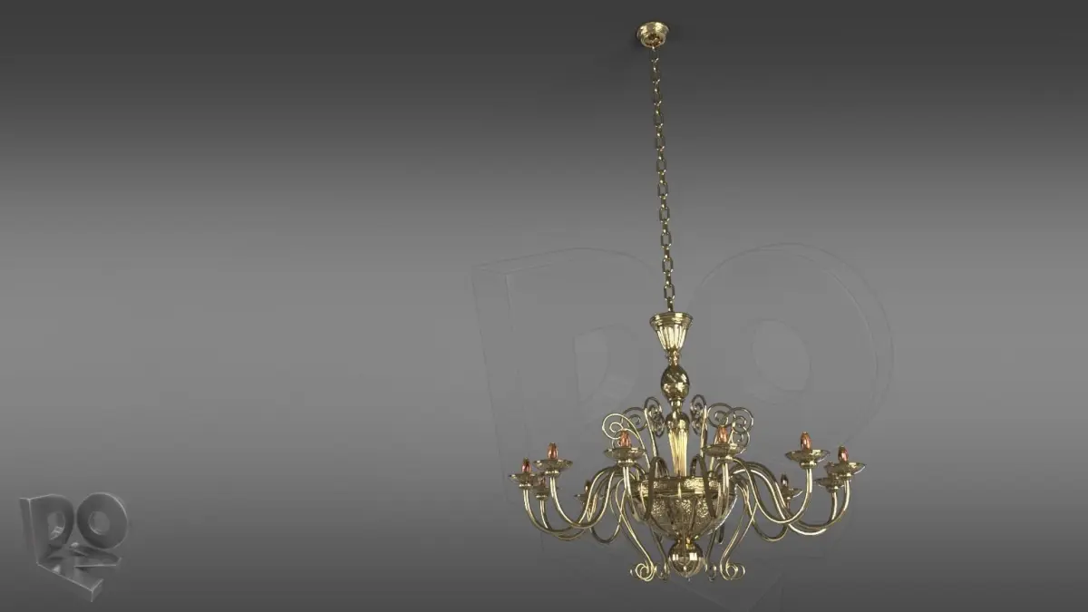 Detailed, subdivision-surface-ready, 3d model of a retro/luxury brass ceiling chandelier.