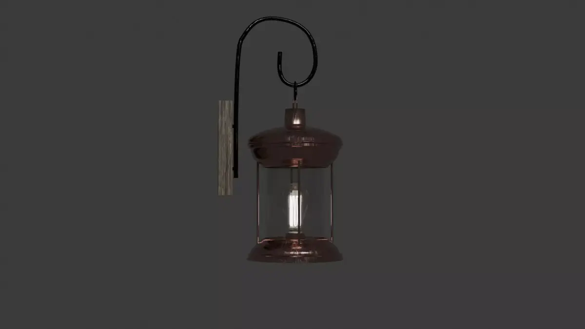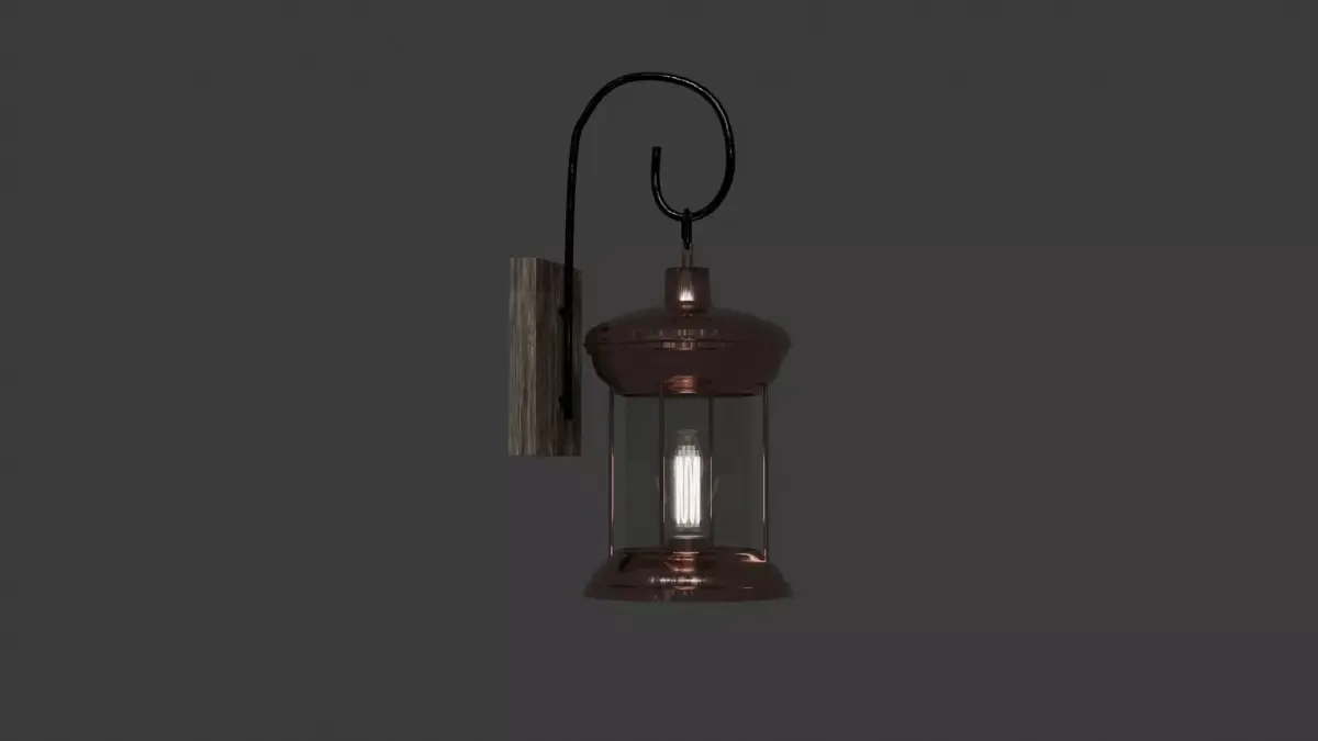 This detailed wall sconce model blends rustic materials and vintage charm in a beautifully crafted design. The piece features a weathered pink brass lantern with a lightly scratched surface finish and a clear glass mantle that reveals an Edison-style bulb inside. The lantern hangs from an iron crook mounted to a sturdy rustic wood base, creating a balanced mix of textures and materials. Each component—the lantern, glass, base, crook, and bulb—is modeled separately for flexible use and easy customization. Perfect for vintage, farmhouse, or industrial-style renders, this wall sconce adds authenticity and visual warmth to any scene. The combination of aged metal, natural wood, and warm light makes it suitable for architectural visualization, game assets, or interior design projects seeking a handcrafted, lived-in look.