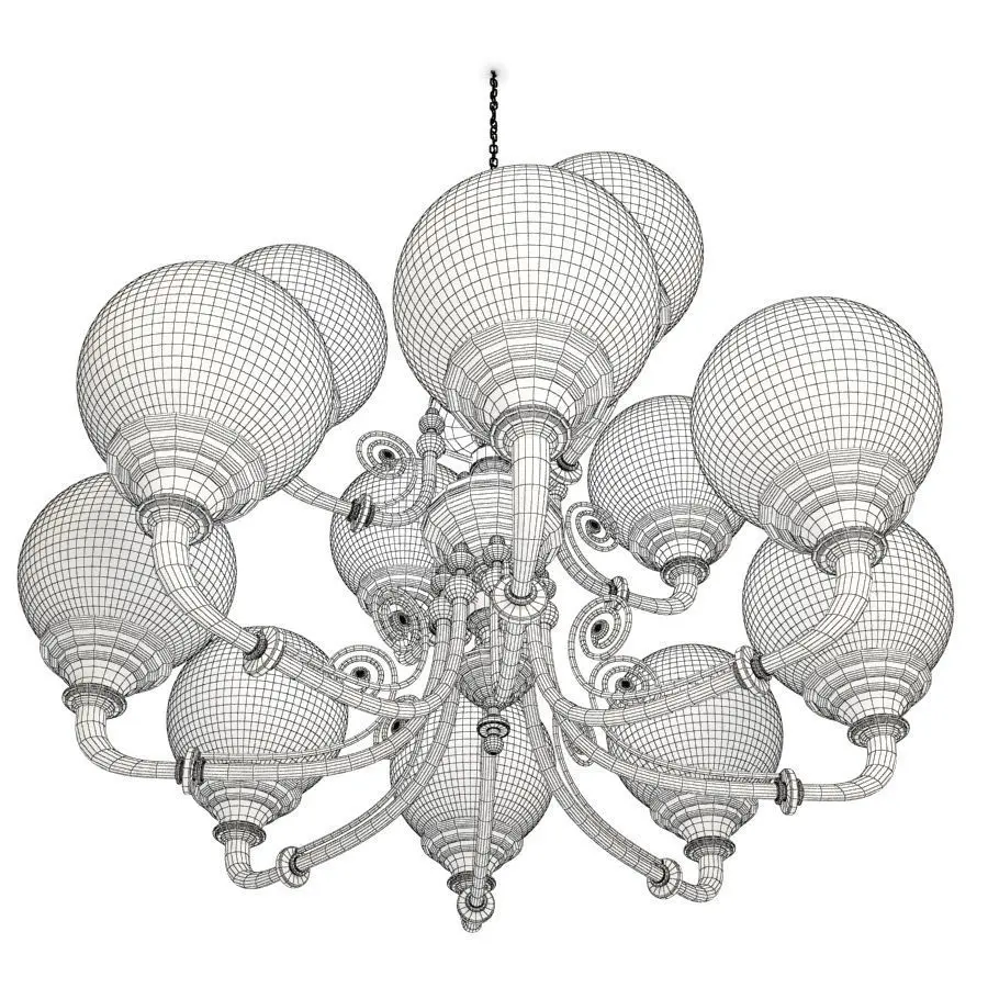 This 3d model of Parisian Brewery Pendant Lamp has a brass structure with 12 bright balls.