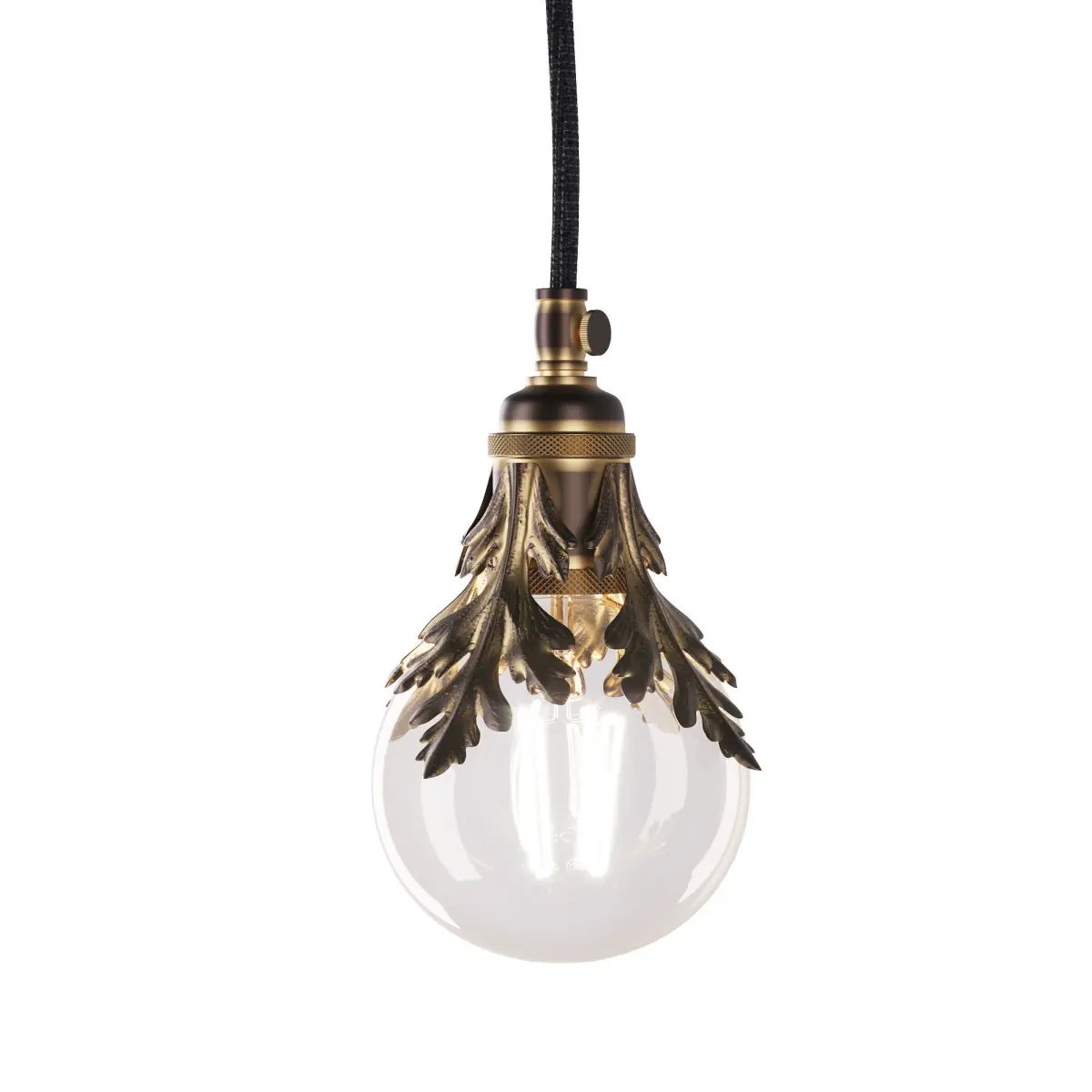 Brass pendant light Poli, SKU.6016 by Pikartlights/A concise brass pendant with cast decorative leaves and a beautiful brown patina. This light fixture will be appropriate in any room, but it will most harmoniously fit into an Art Deco interior. We recommend complementing it with a wall sconce or an exquisite clock. The lamp is carefully handcrafted from brass by Pikart. Made of brass and glass. For more information please check the product page: