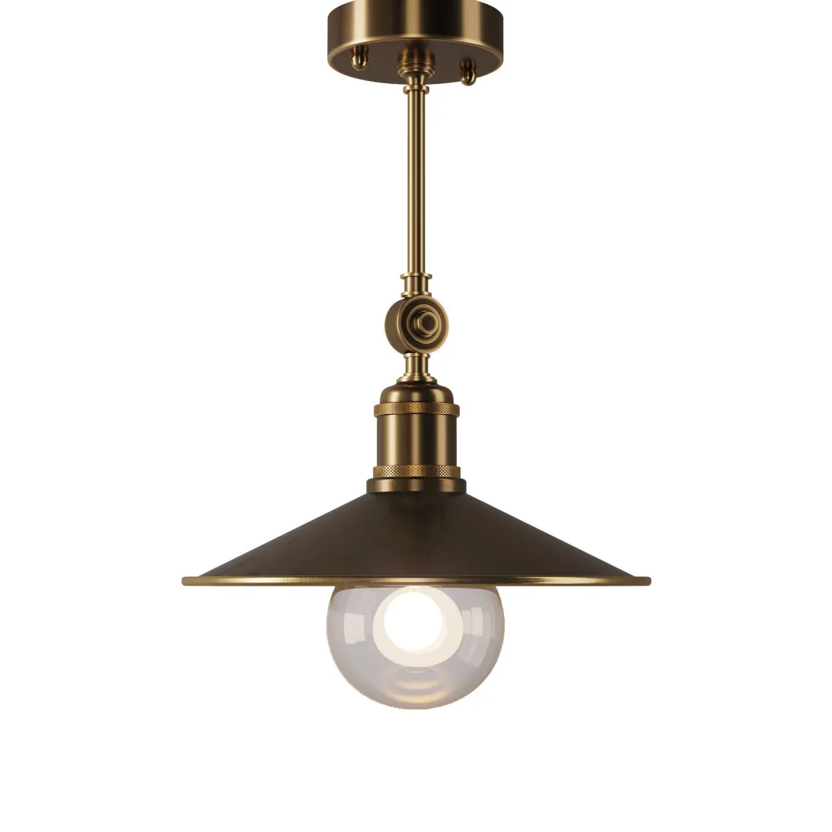 Brass pendant light sku 351 by PikartlightsThis pendant on a bar will help create the right atmosphere and, thanks to its concise design, will be appropriate in any room. Small overall dimensions allow it to be used in low rooms, as well as for lighting bar counters. It will fit best into a loft-style interior. Handcrafted from brass by Pikart. It can be in four universal colors.For more information please check the product page: