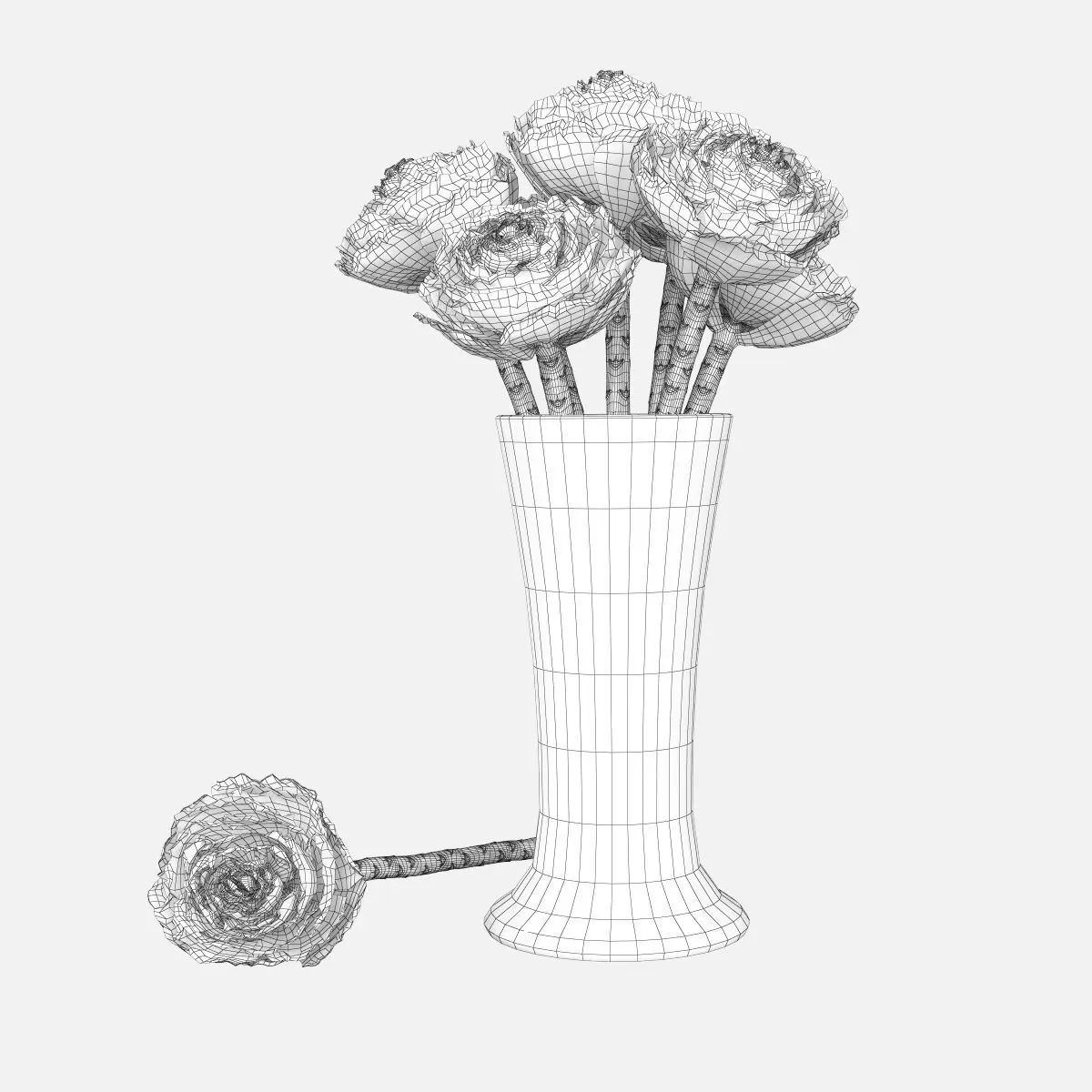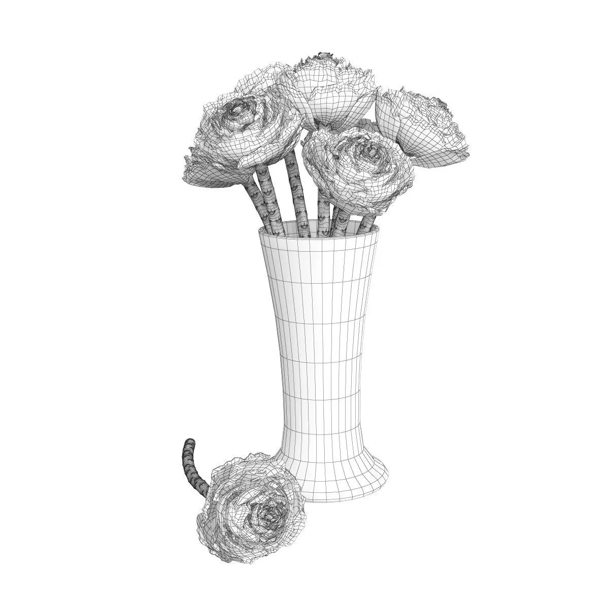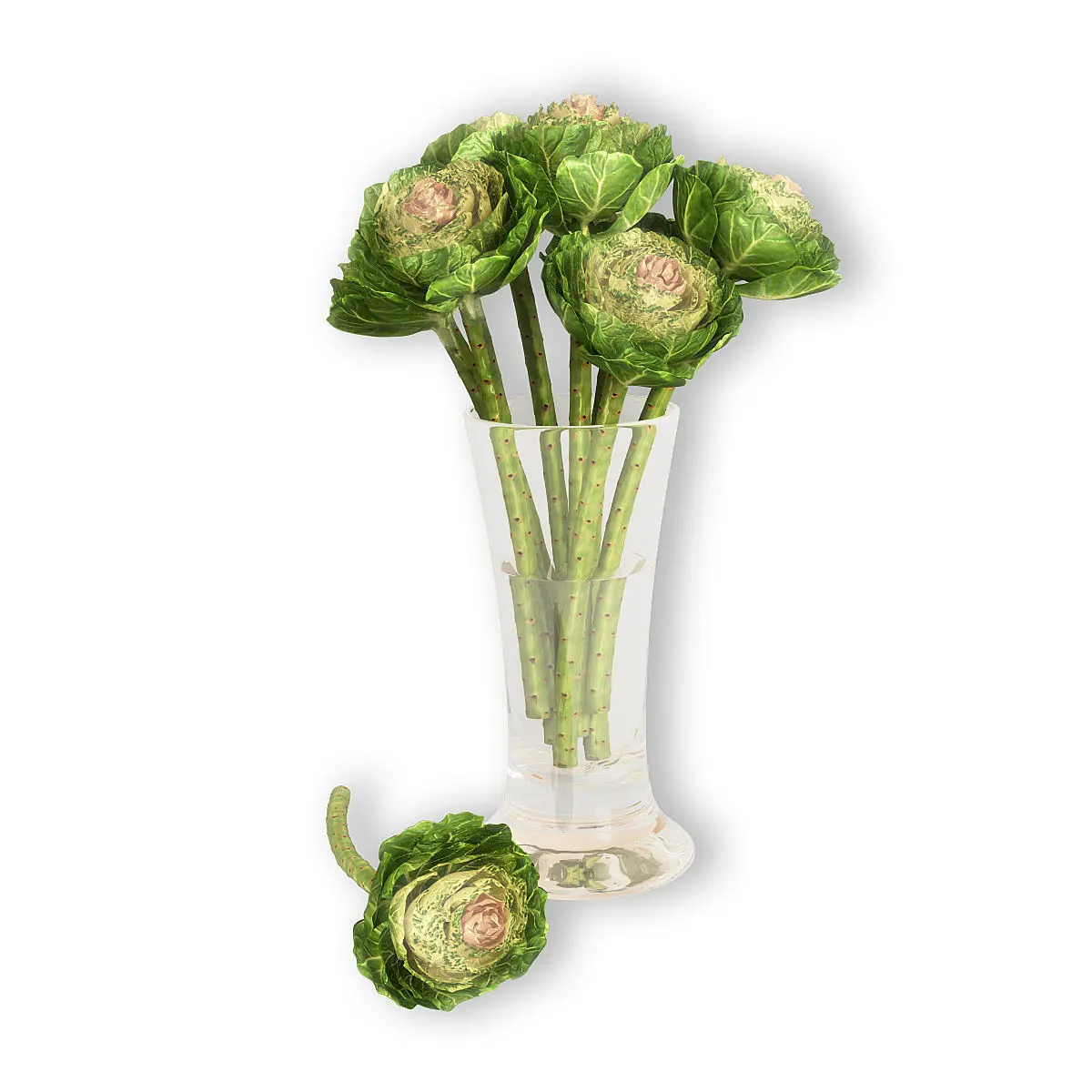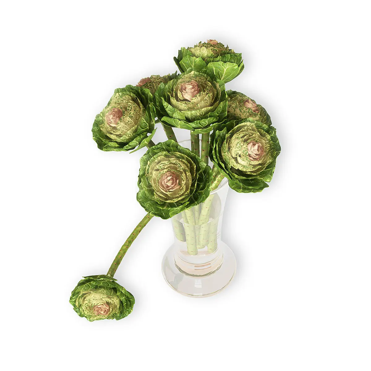 Brassica artichoke stems in glass vase 3D model