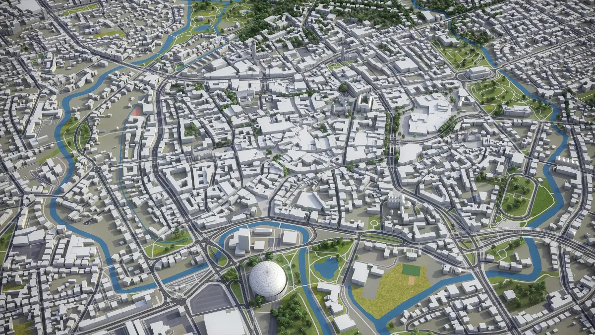 - Full city extents up to 100 x 100 km — or crop to an area of interest for better format compability and scene performance