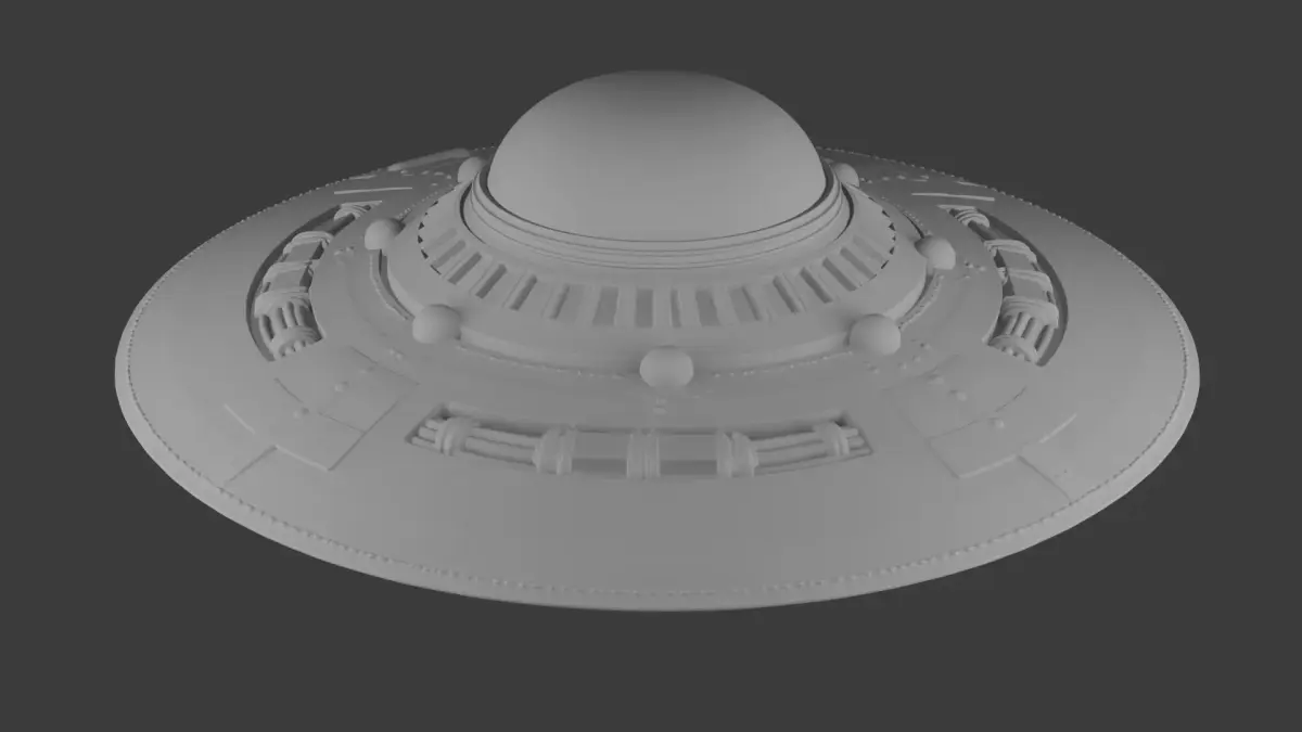 A high-quality Flying Saucer UFO 3D model designed with a sleek futuristic aesthetic, perfect for sci-fi environments, games, animations, and cinematic renders.