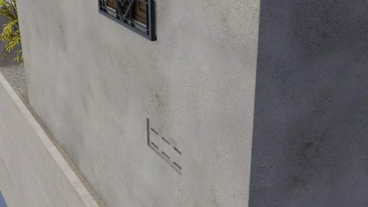 Windows, doors, walls, and patio are separate objects from the house, as each has its own UV mapping.